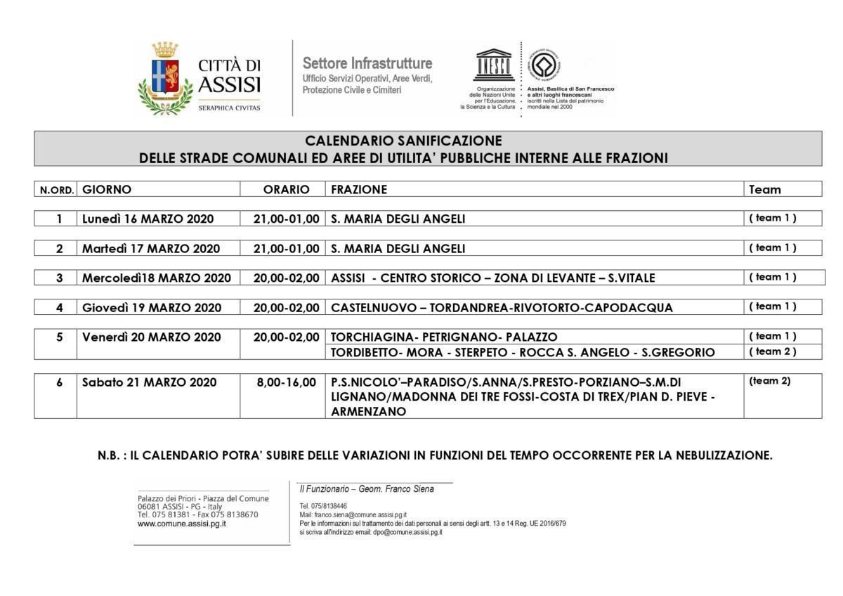 In allegato il programma completo della sanificazione sul territorio i cittadini saranno aggiornati continuamente su orari e luoghi del servizio.