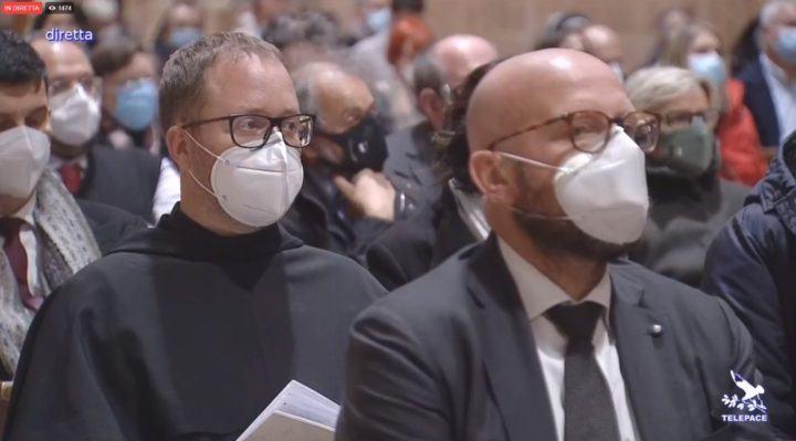 Il Custode del Sacro Convento di Assisi, fra Marco Moroni, ha salutato così: «Quelli che tu stesso hai chiamato “scherzi da papa” ci hanno portato ora a stringerci intorno a te, in una celebrazione che è e vuole essere festosa, anche se dentro questo strano e difficile tempo. Ci stringiamo a te, riconoscenti e gioiosi, noi frati della Custodia del Sacro Convento, fraternità che hai amato e per quasi otto anni come Custode hai servito con affetto, lungimiranza, passione e con lavoro instancabile… Stretti a te, pur con le cautele e le distanze necessarie, con cuore riconoscente al Signore per questo dono alla Chiesa e al mondo, viviamo con gioia questa celebrazione».