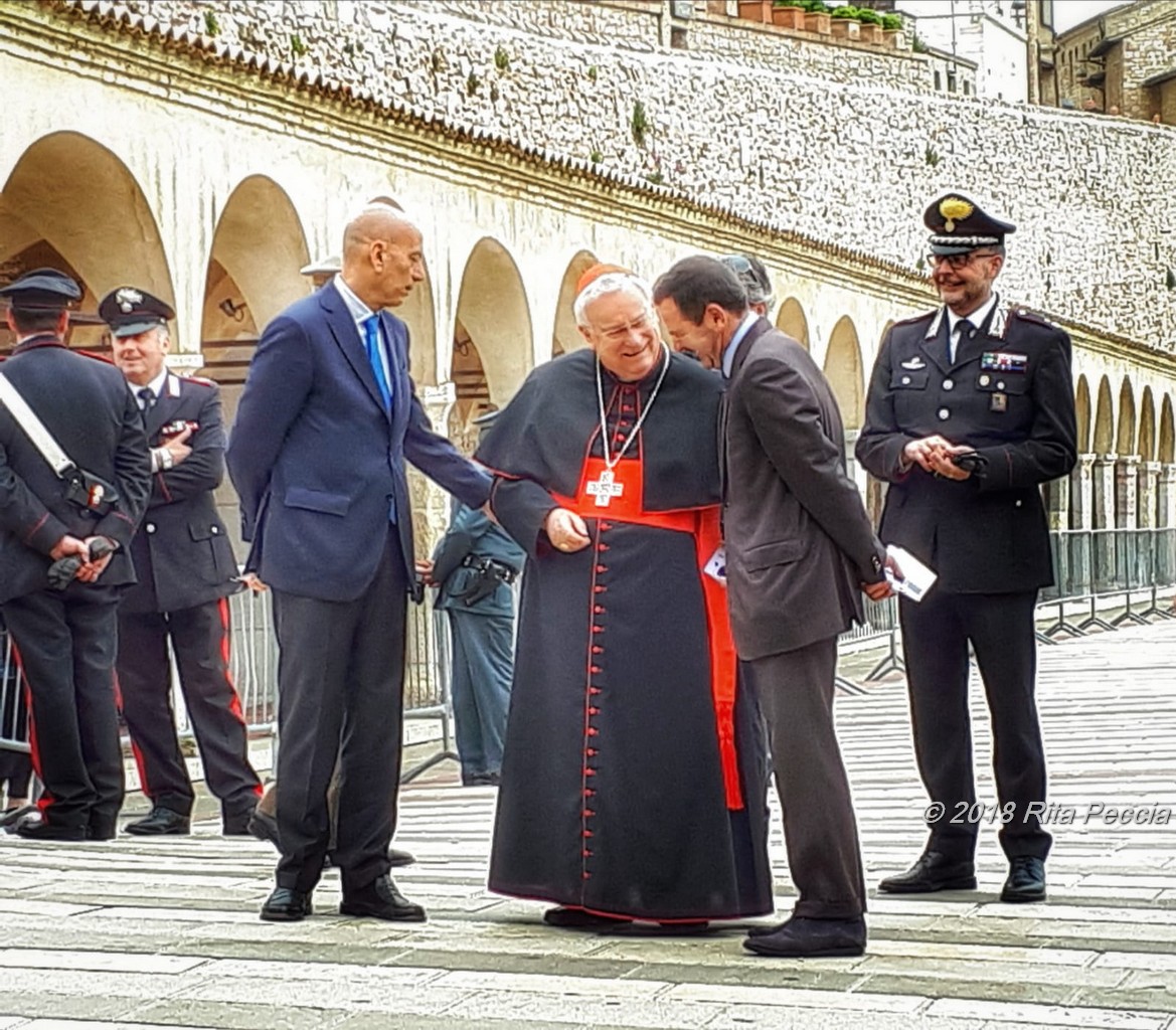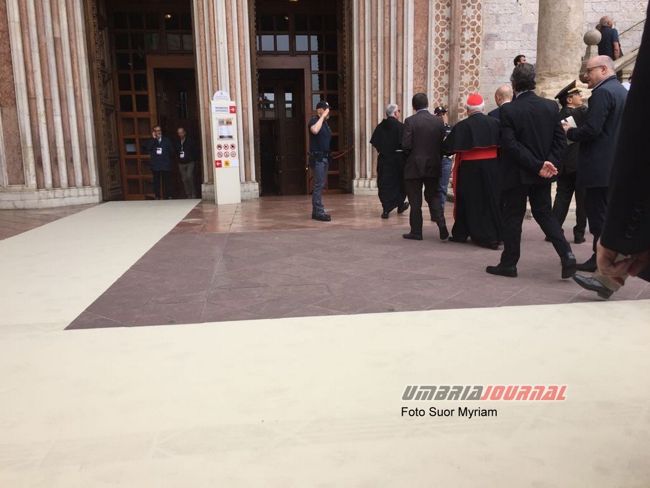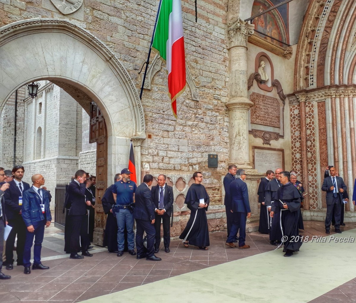 Ad accogliere i due capi di Stato – accompagnati dai rispettivi consorti e da una nutrita delegazione di consiglieri e ministri – ci saranno le istituzioni ecclesiastiche (tra gli altri, il legato pontificio per le Basiliche, cardinale Agostino Vallini, il nunzio apostolico in Italia, l’arcivescovo limi Paul Tscherrig il presidente della Conferenza episcopale italiana, cardinale Gualtiero Bassetti e i massimi rappresentanti delle famiglie francescane) ma anche autorità civili (l’ex presidente del consiglio e della commissione europea, Romano Prodi, il presidente dell’Anac, Raffaele Cantone, la presidente della Regione Catiuscia Marini, i rappresentanti del Governo italiano e oltre 40 ambasciatori.