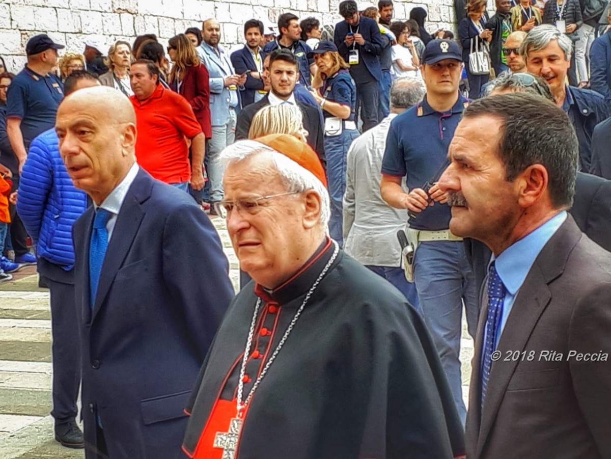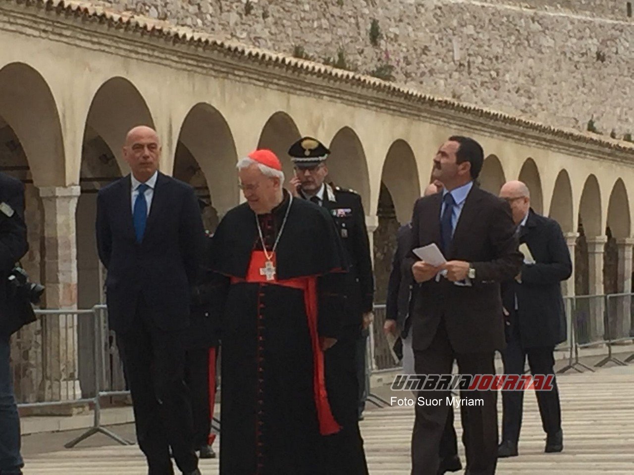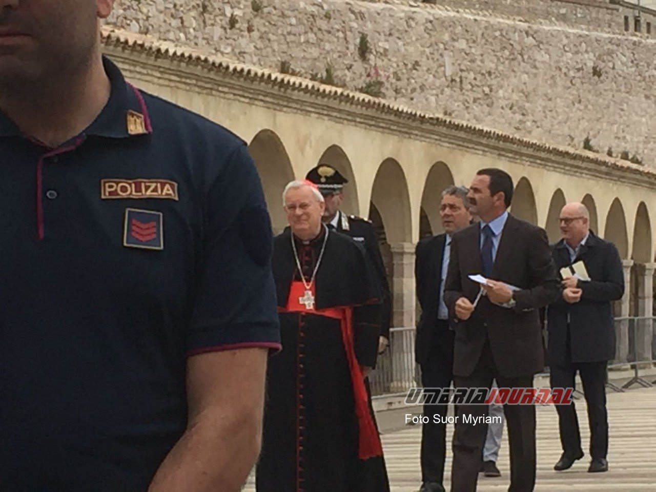 Ad accogliere i due capi di Stato – accompagnati dai rispettivi consorti e da una nutrita delegazione di consiglieri e ministri – ci saranno le istituzioni ecclesiastiche (tra gli altri, il legato pontificio per le Basiliche, cardinale Agostino Vallini, il nunzio apostolico in Italia, l’arcivescovo limi Paul Tscherrig il presidente della Conferenza episcopale italiana, cardinale Gualtiero Bassetti e i massimi rappresentanti delle famiglie francescane) ma anche autorità civili (l’ex presidente del consiglio e della commissione europea, Romano Prodi, il presidente dell’Anac, Raffaele Cantone, la presidente della Regione Catiuscia Marini, i rappresentanti del Governo italiano e oltre 40 ambasciatori.
