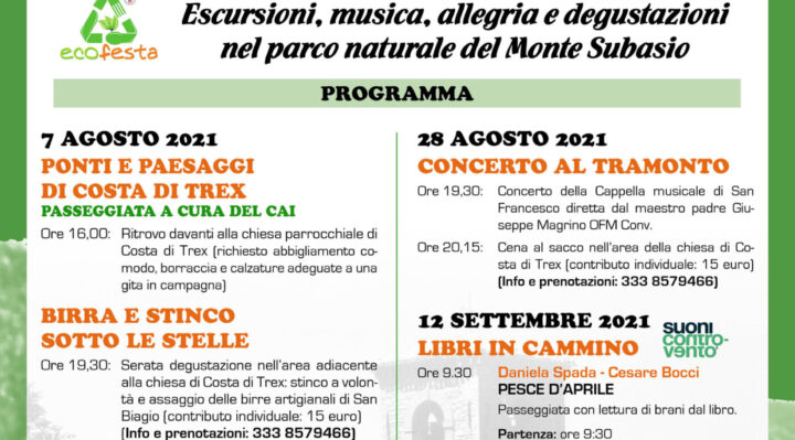 Il programma inizia il 7 agosto con la tradizionale escursione del Cai alla scoperta dei ‘Ponti e Paesaggi di Costa di Trex’. In serata nell’area verde adiacente alla chiesa parrocchiale ci sarà l’assaggio dello stinco e la degustazione delle birre tradizionali di San Biagio. Il tutto accompagnato dalla musica dance ’70-’80-’90 e hit 2021 dei dj Paolo&Cesare. L’8 agosto appuntamento con ‘Costa di Trex in Corsa’, trail organizzato in collaborazione con Aspa Bastia.