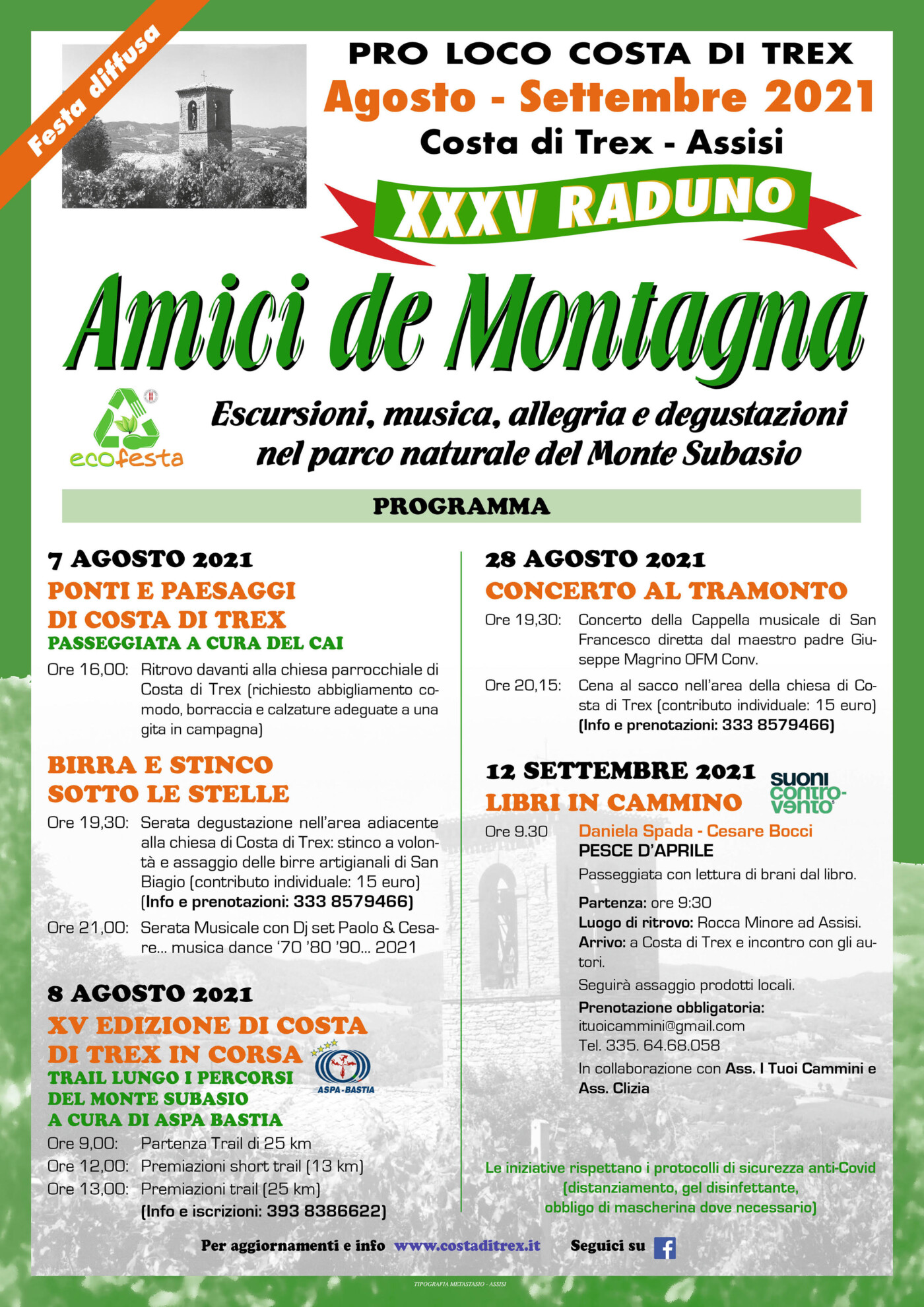 Per motivi di sicurezza legati al Covid-19 salta anche quest’anno il tradizionale Raduno Amici de Montagna, ma la Pro loco di Costa di Trex che da 35 anni organizza l’evento ha pensato di lanciare la festa diffusa. “Per ovvie ragioni relative all’emergenza pandemica – spiega il presidente Marina Rosati – abbiamo deciso che non sarebbe stato opportuno organizzare la festa con le tradizionali situazioni che la caratterizzano.