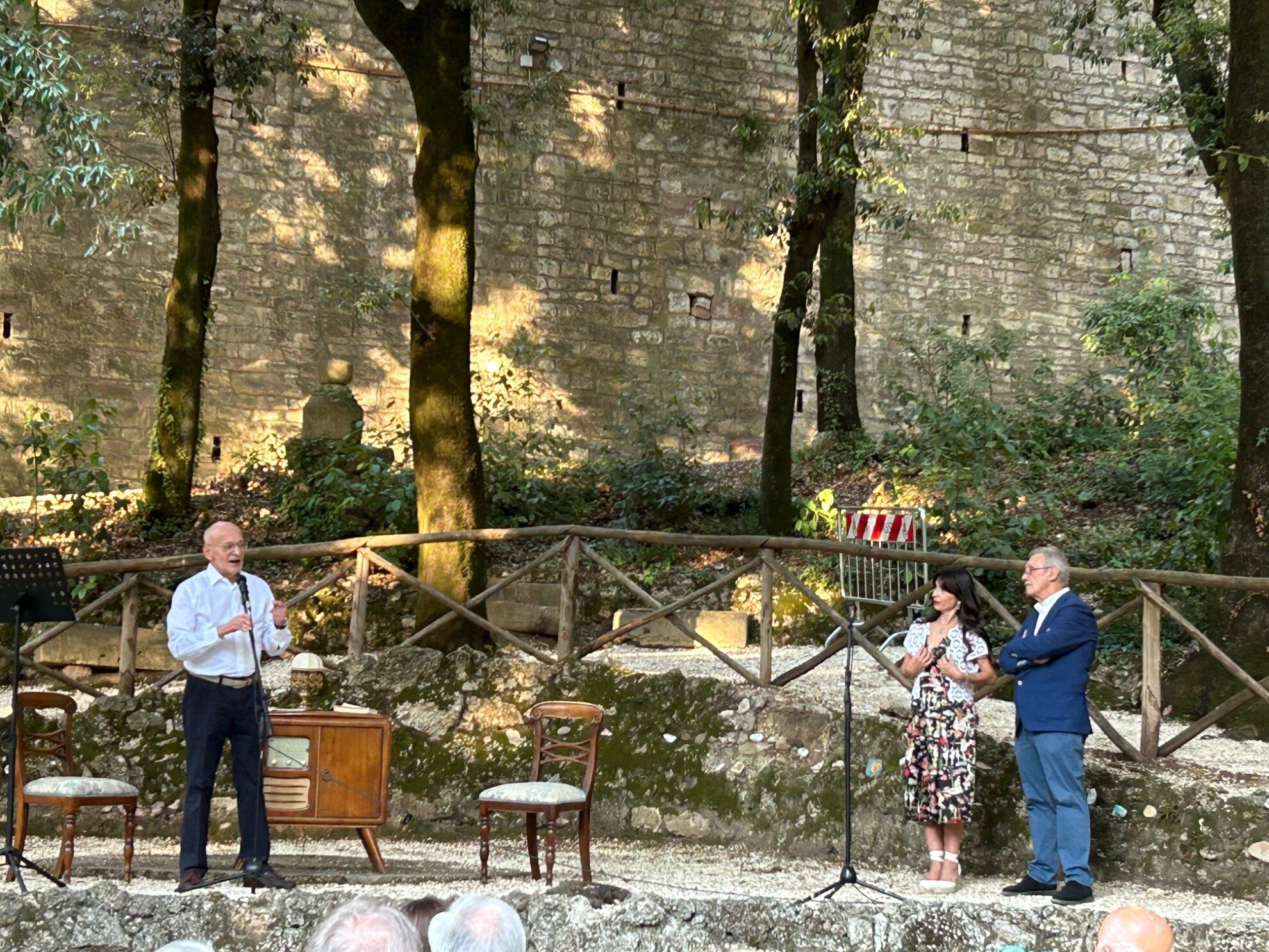 La sindaca Proietti ha ricordato un momento speciale della serata: un omaggio poetico e istituzionale con due trombettisti che hanno suonato il Coprifoco, emergendo da un vialetto nascosto per sorprendere il pubblico.