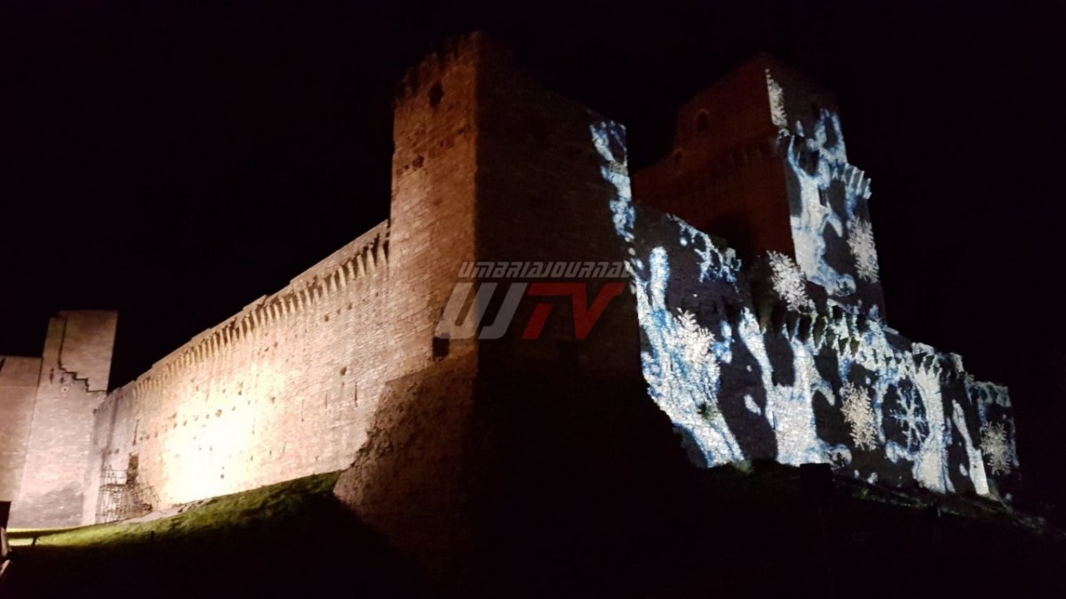 ASSISI – Ecco la Rocca Maggiore intercettata da un progetto di video installazione artistica. Tanti bei colori che rendono e renderanno questo Natale molto particolare. Ci si potrà “immergere”, come catturati in un mondo tridimensionale. Grazie alla tecnica del videomapping, ci si ritroverà in uno spettacolo che celebra la bellezza della Città di Assisi unendo il passato, rappresentato dalle immagini nella nostra memoria, il presente dei nostri paesaggi e il futuro delle nuove tecnologie. Elaborazioni grafiche e sonore saranno in grado di stupire, emozionare e trasportare il pubblico in un viaggio virtuale di grande impatto emotivo. Emozioni che si susseguiranno con ritmo incalzante valorizzando alcuni degli spazi più rappresentativi di Assisi.
