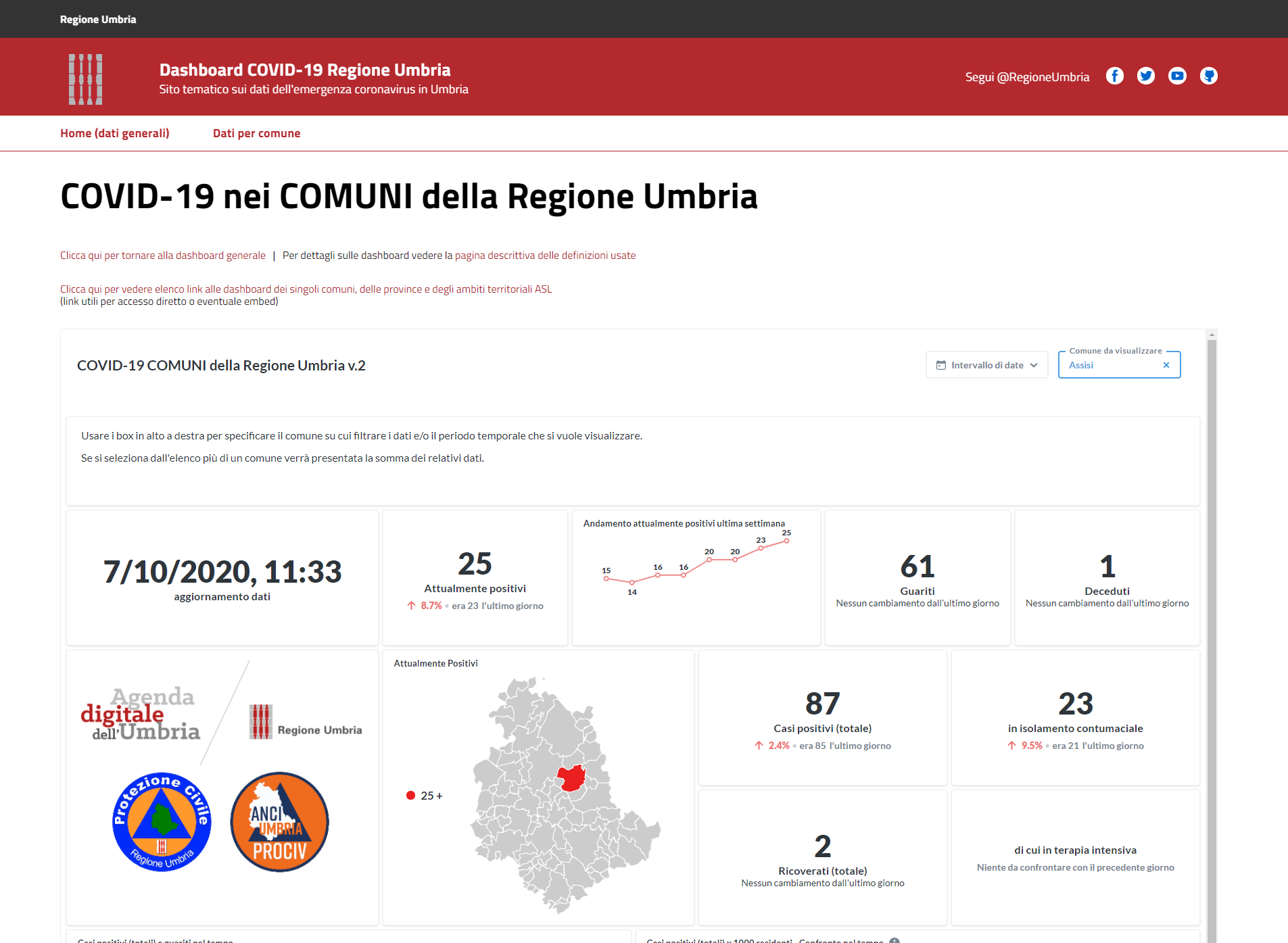 Sono 25 gli attuali positivi ad Assisi, 2 in più nelle ultime 24 ore. Di queste persone 2 sono ricoverate negli ospedali (nessuno in terapia intensiva) e 23 sono in isolamento contumaciale. Sono 87 i contagiati dall’inizio della pandemia e 61 guariti nel complesso e un deceduto.