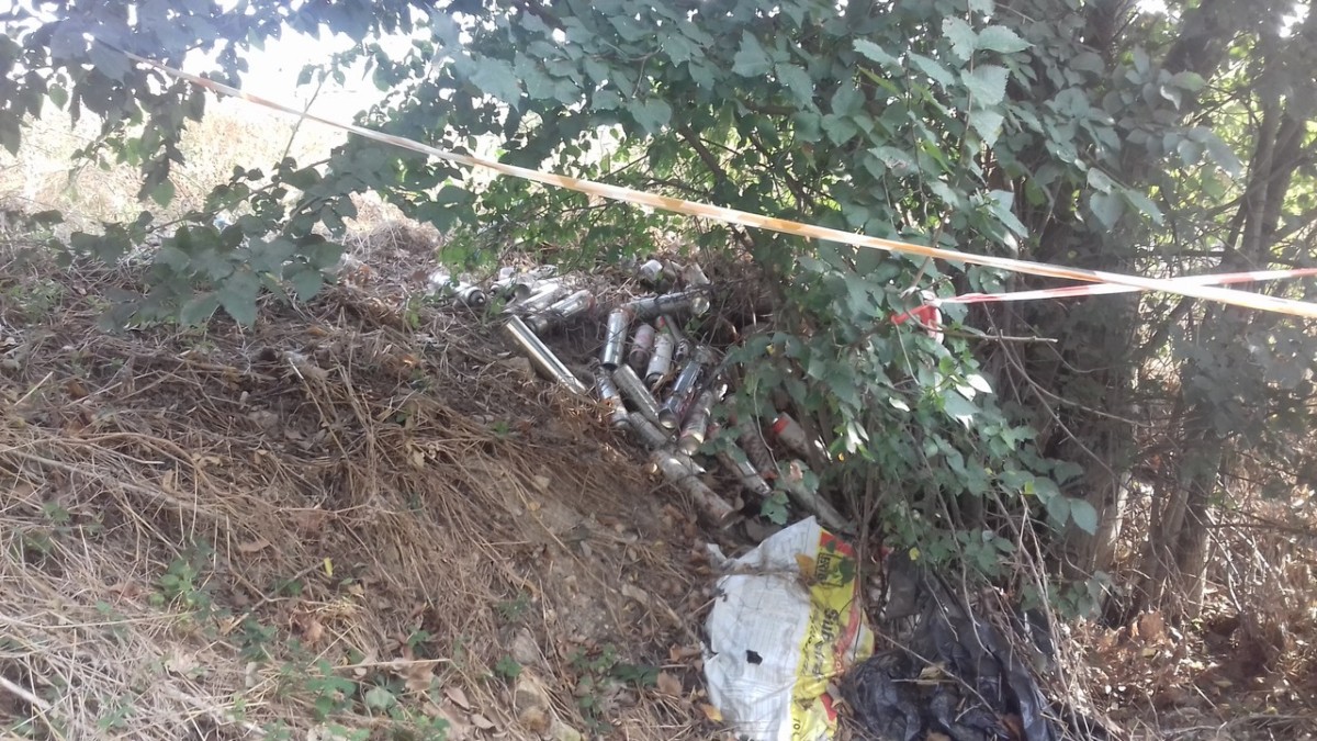 E’ la strada che da San Damiano conduce a Rivotorto; Francesco la percorreva spesso quando dimorava nel Tugurio; seguendo il corso del Rivo risaliva da qui ogni settimana la collina per andare a predicare in città. Questo materiale evidentemente qualcuno l’ha già notato, infatti è circondato dal nastro segnaletico, ma nessuno più a pensato a rimuoverlo in sicurezza. Speriamo che ciò avvenga prima che la ruggine corroda, se già non l’ha fatto, le bombolette, facendone uscire il contenuto che probabilmente inquinerebbe ulteriormente il terreno circostante.