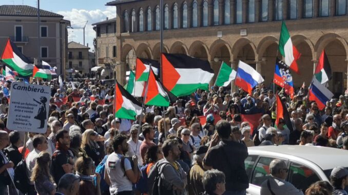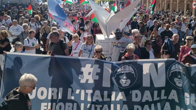 “Cittadini in marcia per la pace” con l’obiettivo di fermare la strage a Gaza, riconoscere il diritto alla pace di ogni popolo, sciogliere la NATO e tutte le alleanze militari, bloccare l’invio di armi all’Ucraina e promuovere un’Italia neutrale, libera e indipendente. Nel pomeriggio di domenica 29 settembre, il Fronte del Dissenso ha organizzato una manifestazione pacifista.