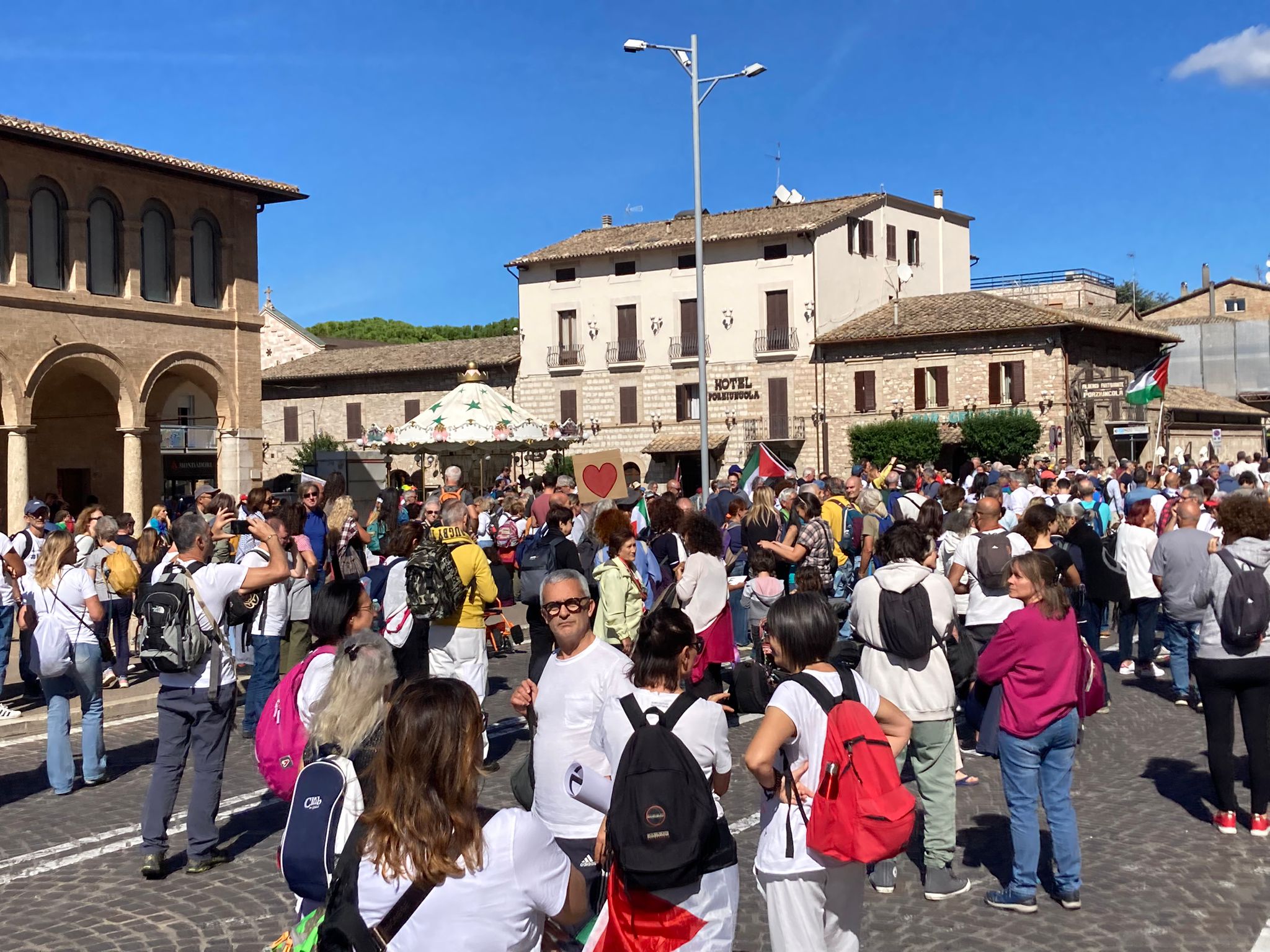 La marcia è partita da Santa Maria degli Angeli e si è diretta verso la città di Assisi e ha visto una partecipazione significativa di persone.