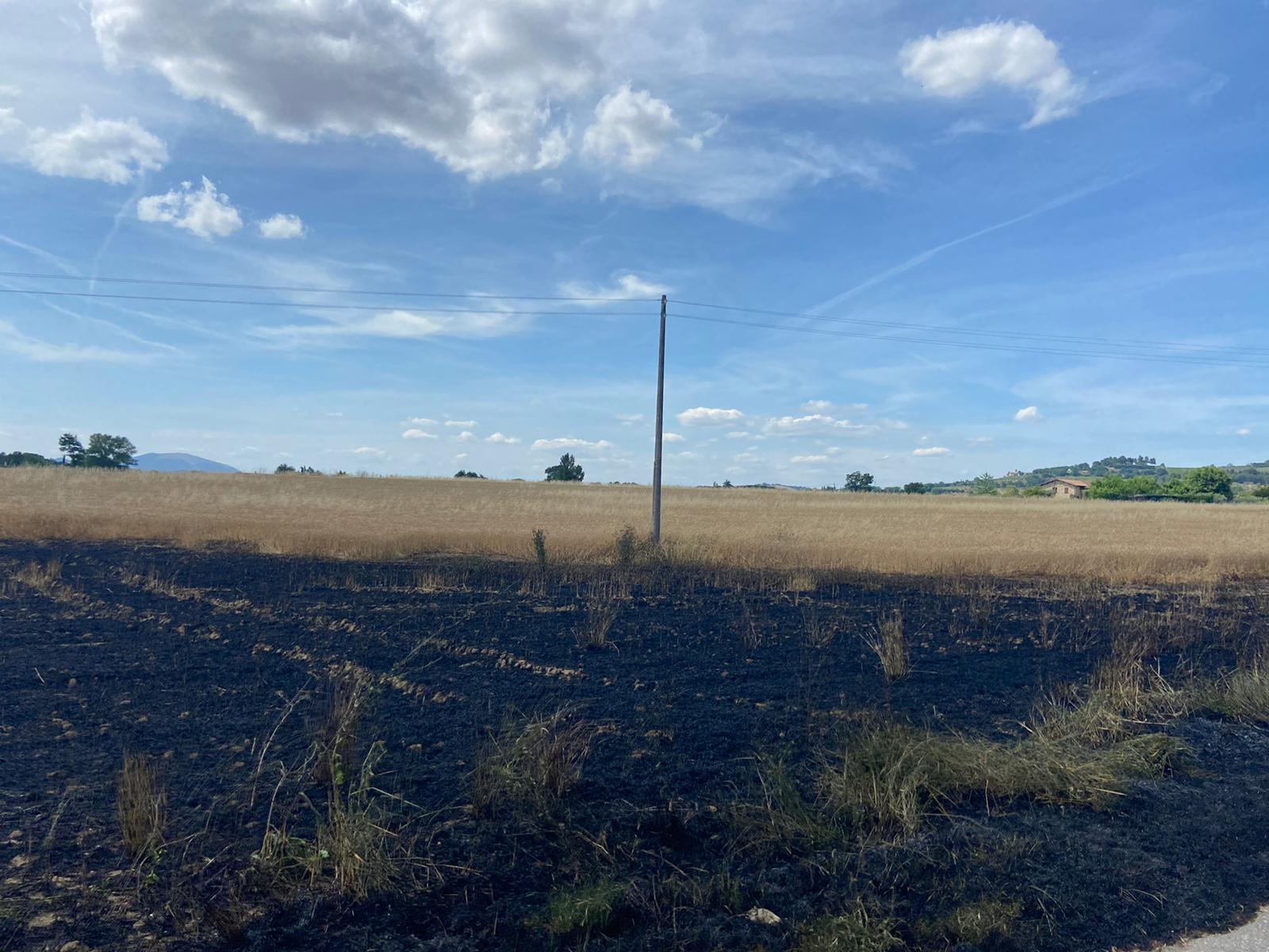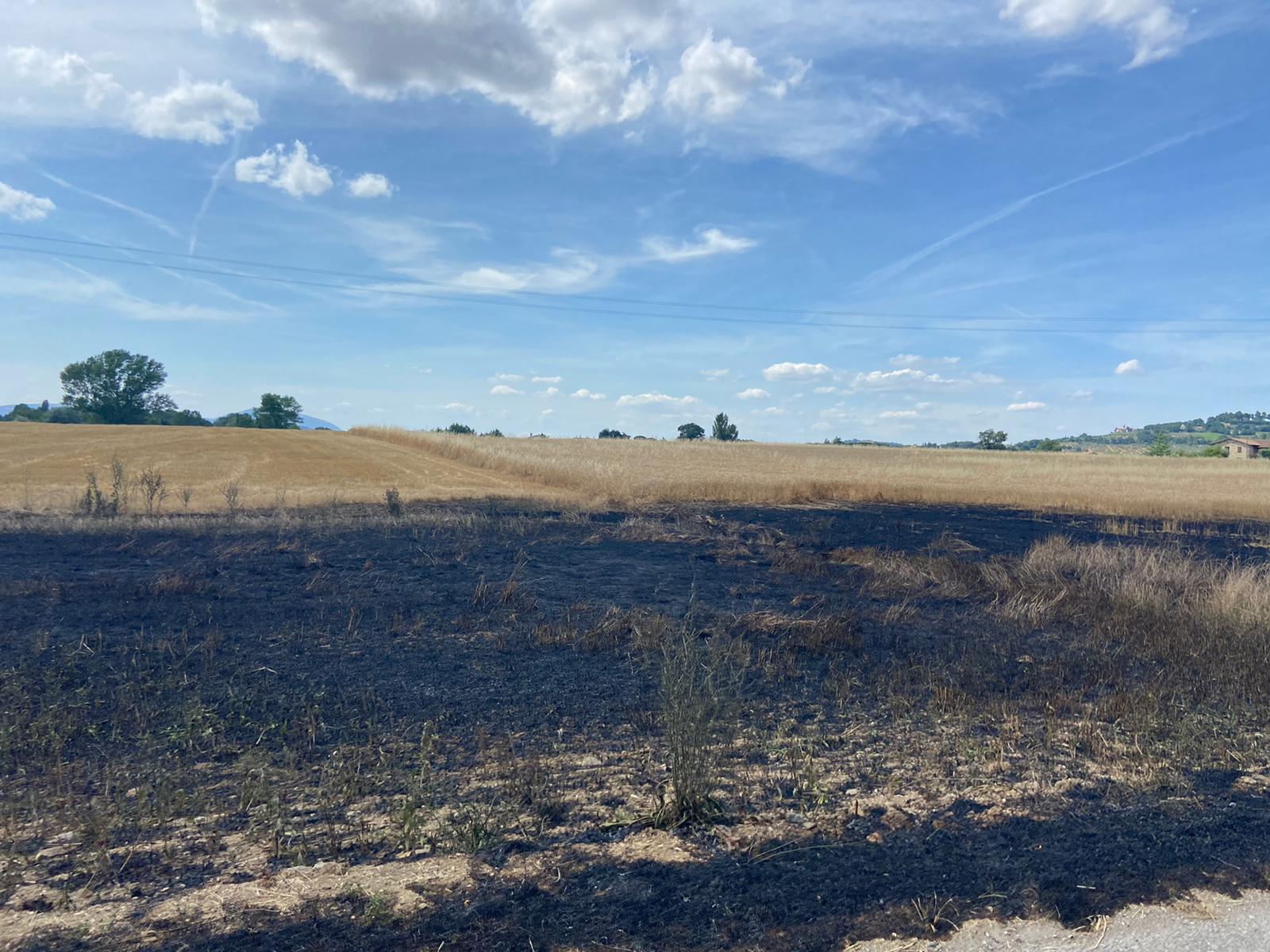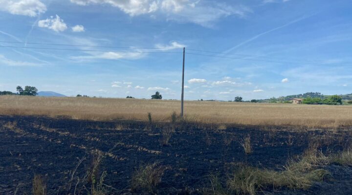 Fiamme in alcuni campi di grano ad Assisi. Vigili del fuoco a lavoro in via Prestille, la strada che da Palazzo D’Assisi porta a Bastia Umbra. Un vasto incendio ha colpito quattro punti diversi della zona e distanti tra loro. I pompieri stanno lavorando da ore per spegnere i vari focolai. Tanta paura perché nell’area c’è anche un agriturismo e diverse abitazioni sparse. Sono intervenuti anche i carabinieri che hanno avviato le prime indagini. Non è escluso che gli incendi siano stati causati da una mano o più mano dolose.