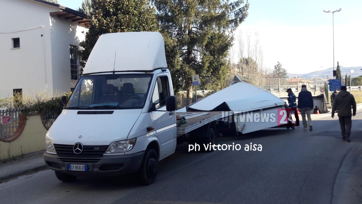 Sul posto sono interventi gli agenti della Polizia locale di Assisi, al seguito del comandante Antonio Gentili. I soccorritori hanno faticato non poco per tirar fuori il pesante mezzo da dove si era incastrato strappando via tutte le lamiere della centinatura. Le foto di Vittorio Aisa mostrano il danno, secondo noi irreparabile, che il mezzo ha subito.