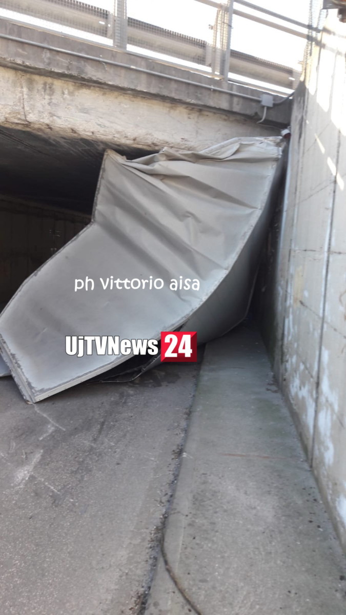 ↘Foto↙ Incidente stradale camioncino nel sottopassaggio, cassone strappato via