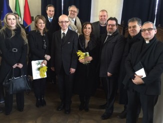 Claudio Ricci Sindaco di Assisi ha portato il saluto conclusivo ai convenuti, presso la sala della Conciliazione, per il premio Valter Baldaccini (compianto e lungimirante [Leggi]