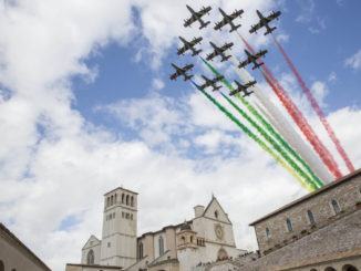 San Francesco, le Frecce Tricolori sorvolano Assisi omaggiando il Patrono d’Italia
