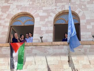 Videocollegamento tra i sindaci di Assisi e Betlemme Il sindaco di Assisi, Valter Stoppini, ha esposto la bandiera della Palestina sulla facciata del palazzo comunale [Leggi]