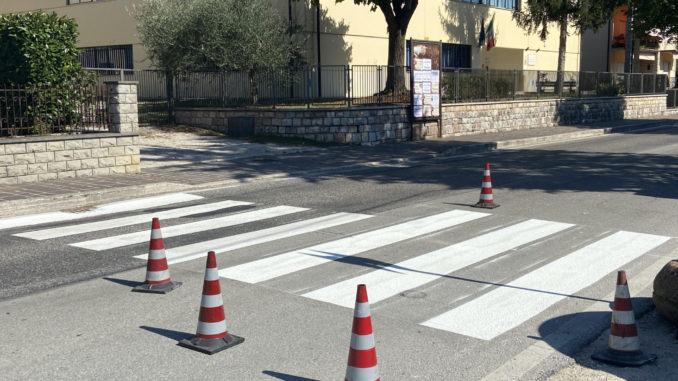 Lo stato degli attraversamenti pedonali a Palazzo di Assisi: ridipinti ieri, oggi (e domani?), ma sempre con il disprezzo per le insormontabili barriere architettoniche che rendono i passaggi poco o per niente fruibili da persone disabili o con passeggini. Cosicché … la zebra finisce e cozza nel marciapiede!