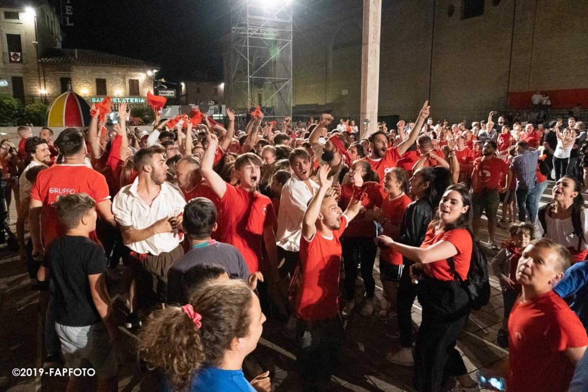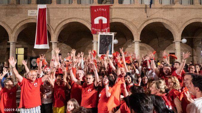 Il Rione Ponte Rosso con punti 22 ha vinto il Palio del Cupolone edizione 2019. Il verdetto finale è arrivato poco prima della mezzanotte, quando il presidente comitato del J’Angeli 800, Marso Dusi, insieme alla giuria ha srotolato il lungo stendardo riportante il colore del rione vincitore, appunto il rosso. Al secondo posto il Rione del Campo punti 14, al terzo con lo stesso punteggio il Rione Fornaci. Il Rione del Campo si classifica secondo in quanto meglio classificatosi nel Corteo Storico.