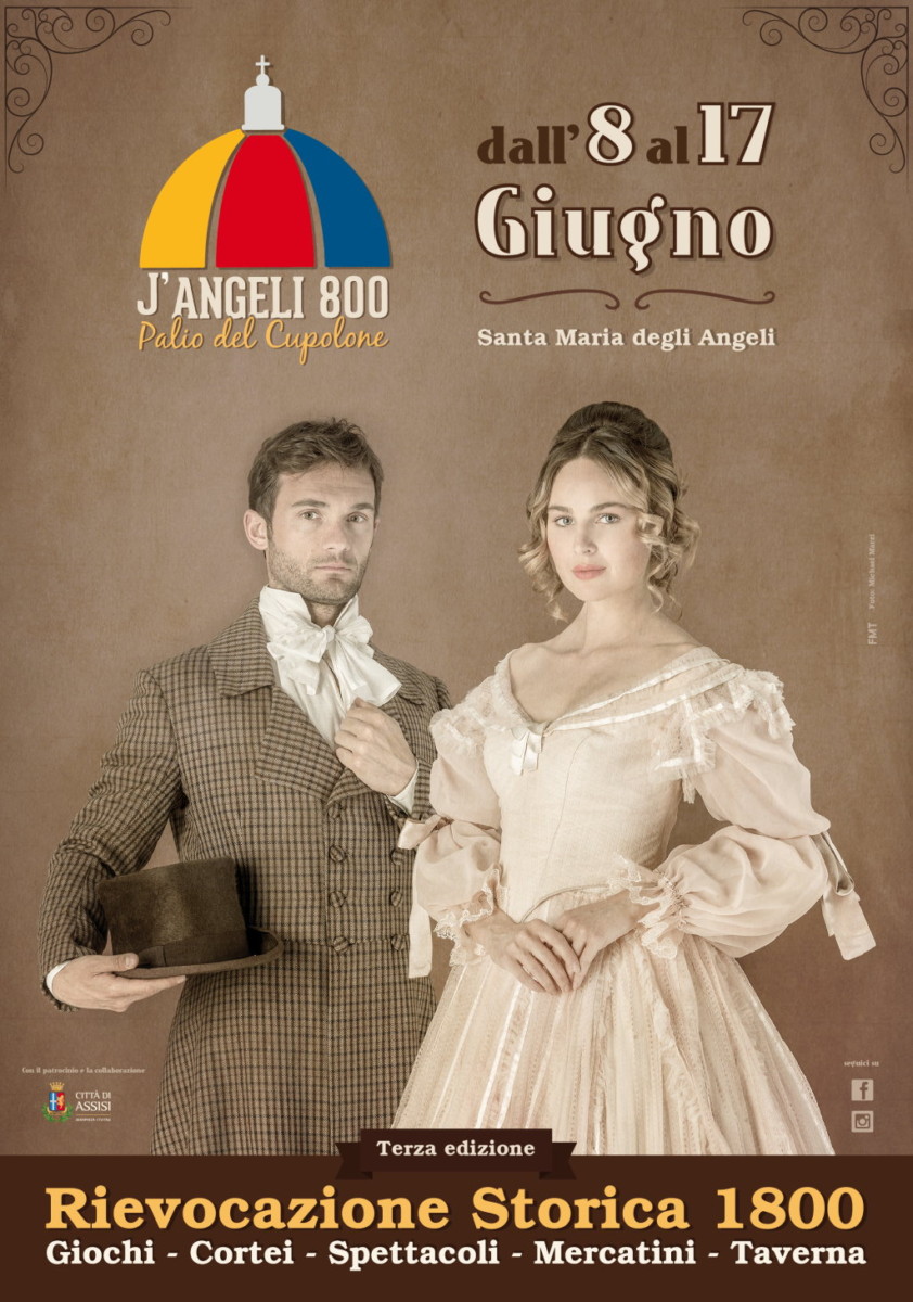Rievocazione, J’angeli 800 Palio del Cupolone, ecco il nuovo visual per la comunicazione pubblicitaria 2018, i volti sono Eleonora Rio e Giovanni Buini angelani doc Ufficialmente definitivo il nuovo Visual della comunicazione pubblicitaria per l’edizione 2018 de J’Angeli 800 Palio del Cupolone, che si terrà dall’08 al 17 Giugno in piazza Garibaldi a Santa Maria degli Angeli. Per il 2018 abbiamo focalizzato l’obiettivo della comunicazione pubblicitaria lavorando con due testimonial, uomo e donna naturalmente Angelani DOCEleonora Rio fotomodella e Giovanni Buini imprenditore che quest’anno rappresenteranno l’immagine di tutta la comunicazione del Palio 2018.