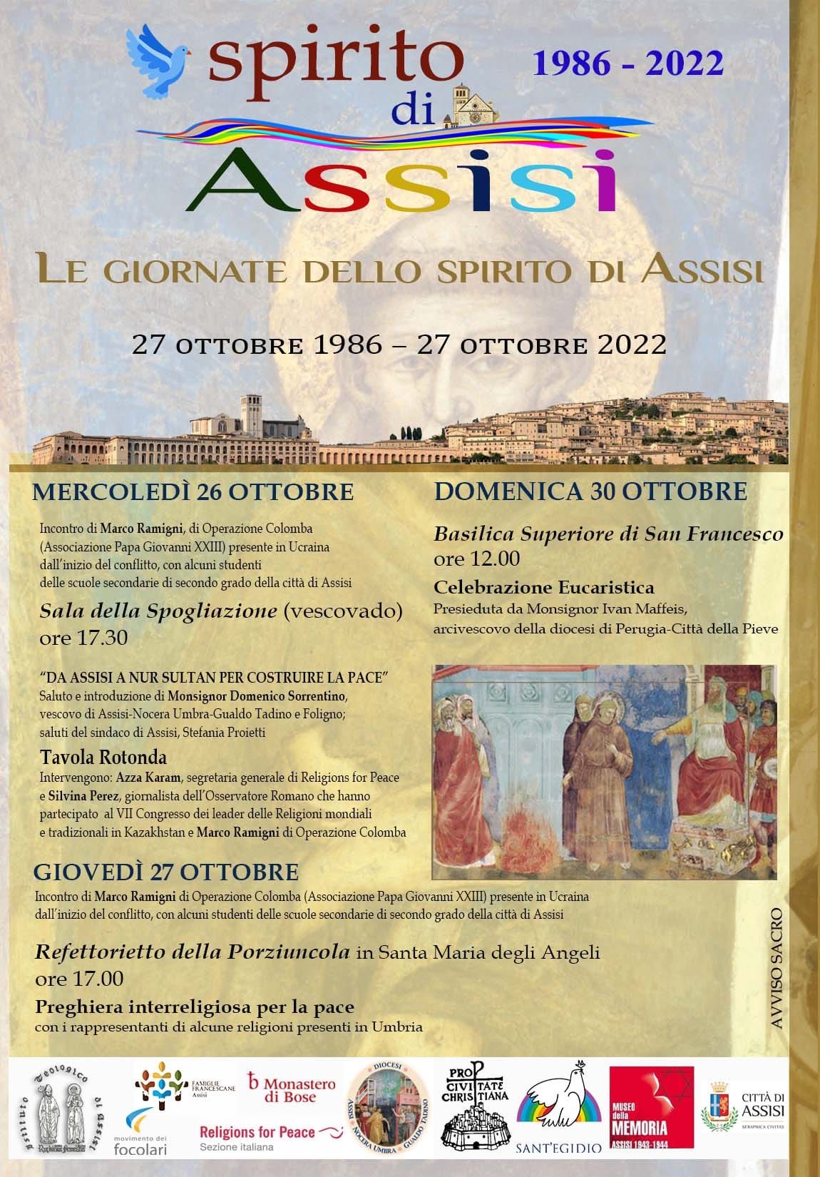 Il 27 ottobre ricorre il 36esimo anniversario dello Spirito di Assisi che si fa eco dello storico incontro interreligioso di preghiera per la pace del 1986, convocato da San Giovanni Paolo II. Una ricorrenza che anche quest’anno è caratterizzata da diversi momenti che prenderanno il via mercoledì 26 ottobre con la presenza di Marco Ramigni, di Operazione Colomba (Associazione Papa Giovanni XXIII) presente in Ucraina dall’inizio del conflitto che incontrerà alcuni studenti delle scuole secondarie di secondo grado della città di Assisi.da Ufficio Stampa Diocesi Assisi