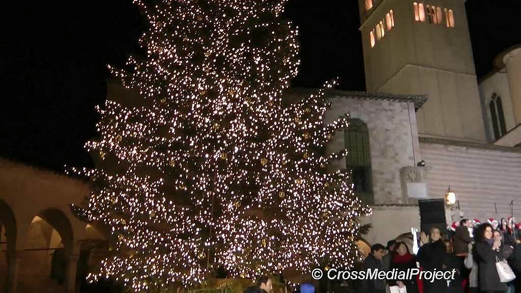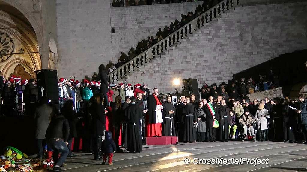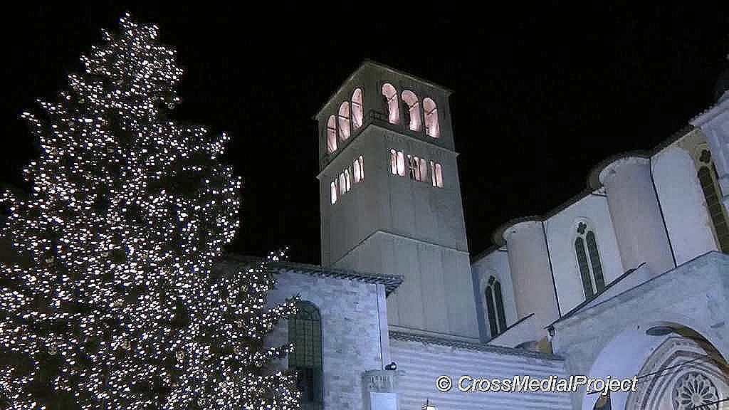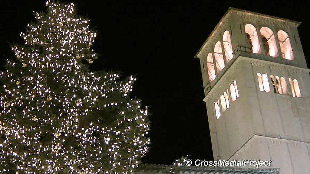 Assisi, accensione e benedizione albero e presepe terremotati