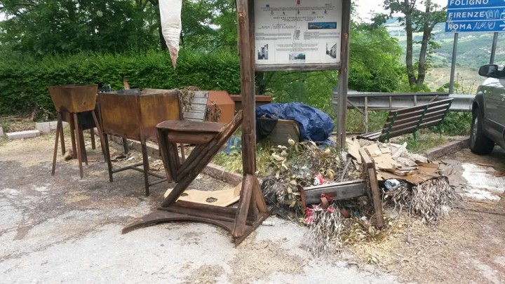 ASSISI – Quella che vedete nelle foto è la situazione in cui ci veniamo a trovare tutti gli anni dopo il Calendimaggio, quando si tratta di montare e allestire ci sono tutti i partecipanti della Parte de sotto, sai in via San Giacomo. si fanno le scene di parte, poi dalla domenica, dopo in calendimaggio spariscono tutti e rimane una situazione di disagio a 100 metri dalla Basilica di San Francesco…una bella presentazione per i turisti che arrivano, nessuno obbliga a sistemare in un certo lasso di tempo e nessuno controlla, ma i topi proligferano e in altri anni abbiamo trovaro anche qualche serpe.