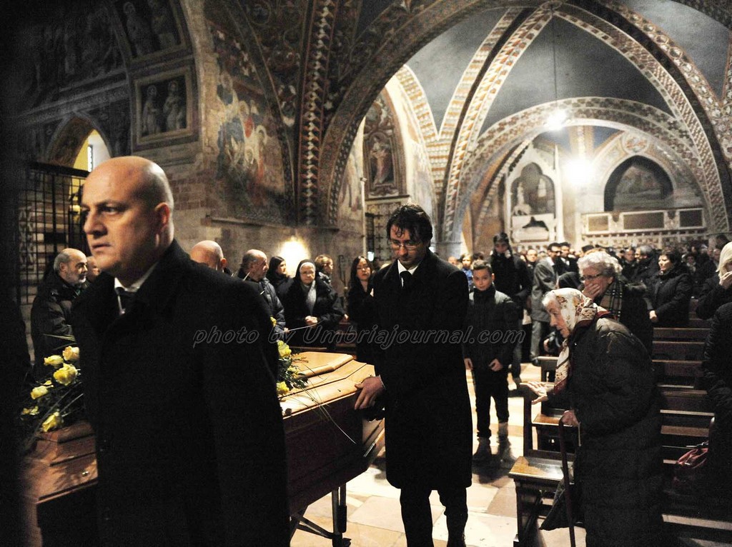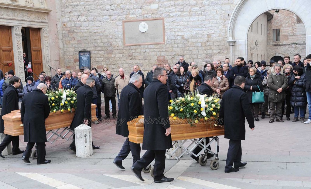Le esequie si sono svolte nella basilica inferiore di San Francesco, celebrate dal Vescovo di Assisi Mons. Domenico Sorrentino. I corpi sono stati tumulati nel cimitero di Assisi.