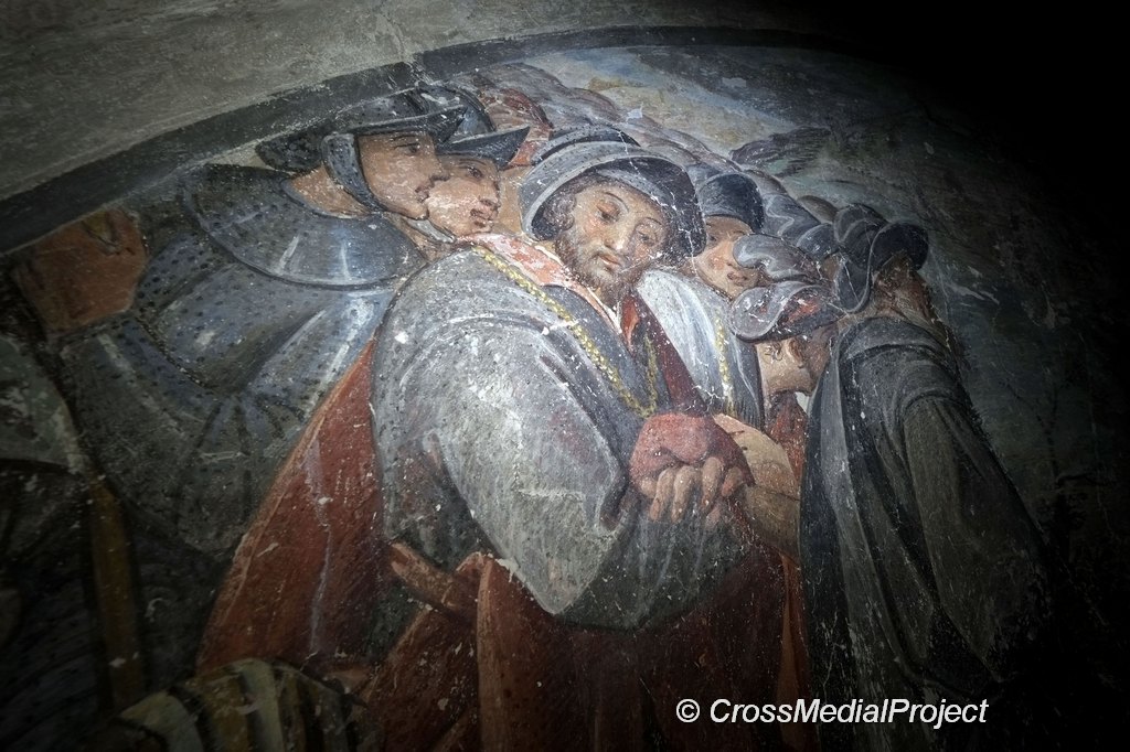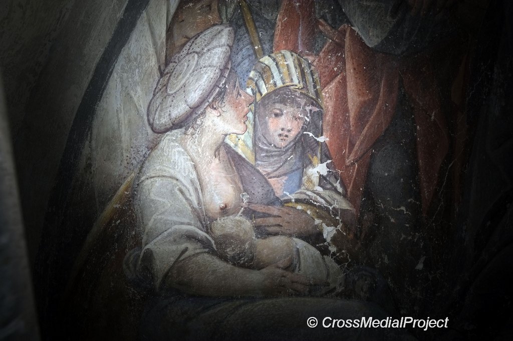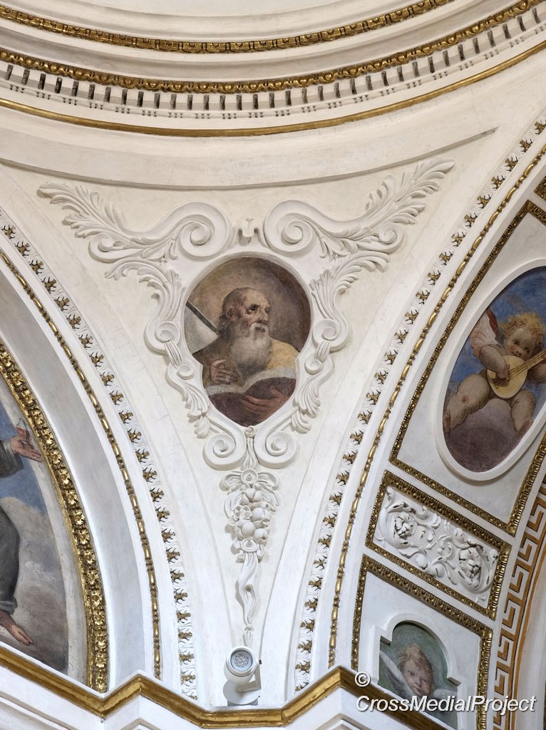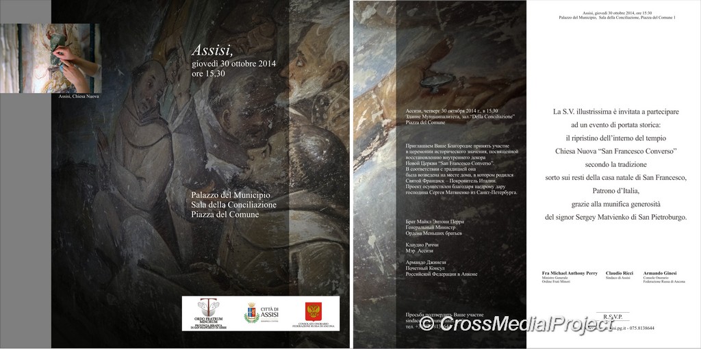ASSISI – L’originale splendore seicentesco di Chiesa Nuova “San Francesco Converso” in Assisi, sorta sui resti della casa natale del Patrono d’Italia, verrà presentato giovedì 30 ottobre alle ore 15.30. Prima di accedere alla chiesa l’appuntamento è alla sala della Conciliazione del Palazzo del Municipio. Presenti il benefattore russo Sergey Matvienko, alte autorità laiche e religiose, ben quattro ambasciatori stranieri, consoli, studiosi nonché  la Sopraintendenza dei Beni Storici Artistici ed Etnoantropologici di Perugia in rappresentanza del Ministero dei Beni Culturali. Grazie alla munifica generosità del cittadino russo Sergey Matvienko di San Pietroburgo, di religione ortodossa, e alla sensibilità del Console Onorario della Federazione Russa di Ancona Armando Ginesi, sono ritornati alla luce gli affreschi che nel 1925 erano stati coperti da uno strato di intonaco finto-oro e scoperti a seguito di una consultazione di un libro illustrativo del 1700. Da allora, fino ad oggi, nessuno poteva immaginare ciò che è emerso dopo il lavoro di restauro, tanto che le scoperte venute alla luce grazie a questo intervento restaurativo costituiranno materia di studio per iconologi, storici e studiosi del francescanesimo. Giovedì ci sarà una sola impalcatura presente perché durante i lavori è emerso che la cupola nasconde affreschi ulteriori: ciò richiederà una nuova e non prevista azione degli esperti restauratori, alla scoperta di quel che nasconde un’ampia superficie ricoperta di motivi decorativi geometrici, anche se già, alcuni saggi effettuati, lasciano intravvedere forse episodi di storia del francescanesimo maturo, a fronte di quello degli inizi raccontato nei pennacchi e nella paraste dell’edificio su cui si è lavorato.