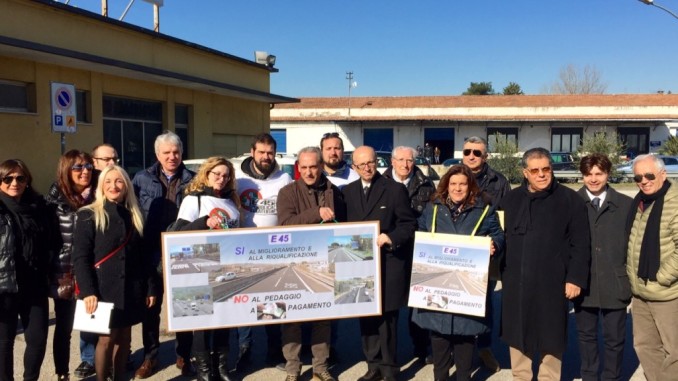 Claudio Ricci, a conclusione della proficua giornata, ringrazia quanti si sono impegnati, e i tanti che hanno partecipato, alla “giornata di sensibilizzazione” per dire “si” alla riqualificazione (senza trasformazione in autostrada) della strada E45 e “no” al pedaggio (a pagamento) per residenti, trasportatori e turisti.
