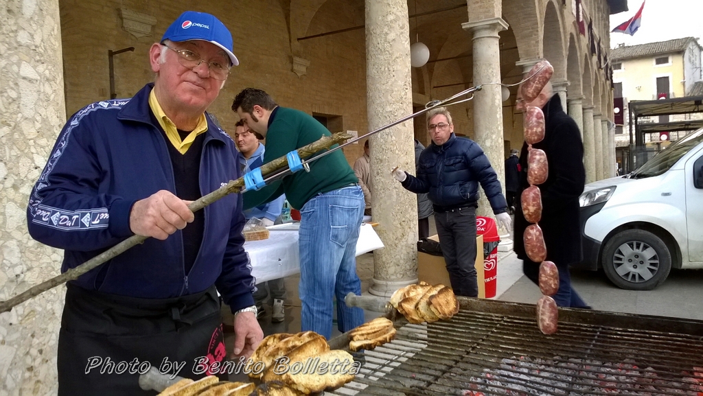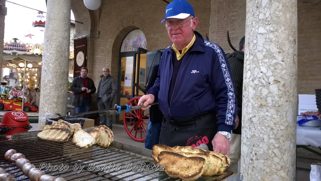 Domenica 19 gennaio, si celebra Sant’Antonio Abate con una processione, la benedizione degli animali e la distribuzione del pane benedetto Storia e tradizione della festa A Santa Maria degli Angeli, via di transito dei postiglioni postali tra Firenze e Roma, vi era la stazione per il cambio dei cavalli. Dopo il 1860 scoppiò una grave epidemia, che colpì in modo particolare i cavalli di dette scuderie. I padroni preoccupati, si rivolsero fiduciosi a Sant’Antonio Abate, protettore delle bestie, pregando i religiosi della Porziuncola di fare un triduo in onore del Santo, di cui in quei giorni ricorreva la festa. Ottenuta la grazia con la fine del morbo e scongiurato il pericolo della morte dei cavalli, in ringraziamento al Santo fu celebrata con grande solennità quell’anno la sua festa, fu fatta la processione per le vie del paese e fu distribuito un pranzo ai poveri, che prese la denominazione di “Piatto di Sant’Antonio”. Intanto, pero’, i festeggiamenti popolari sono già cominciati, come ben si vede dalle foto di Benito Bolletta.