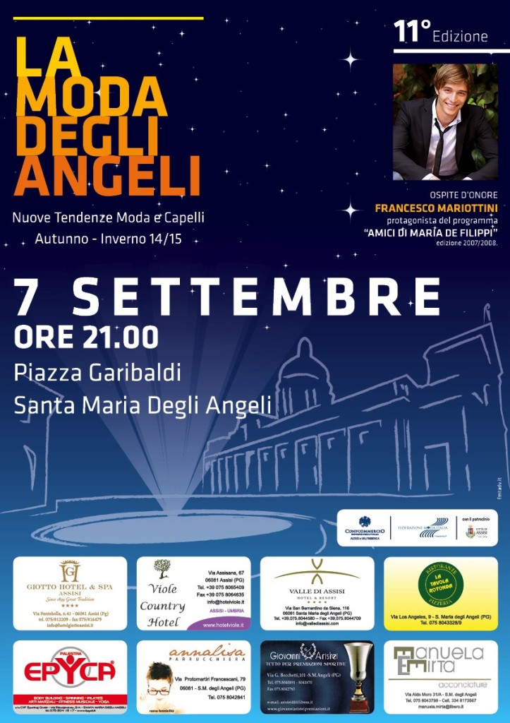 Domenica 7 Settembre in Piazza Garibaldi alle ore 21.00 torna “La moda degli Angeli”, i commercianti ed i parrucchieri di Santa Maria degli Angeli vi aspettano con le nuove collezioni di abbigliamento ed accessori e le nuove tendenze moda capelli autunno inverno 2014/2015.