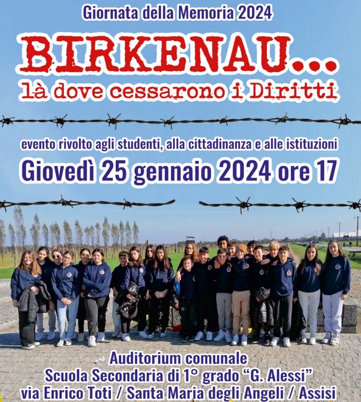 Giornata della Memoria – Il Lions Club di Assisi ha sostenuto il progetto “Auschwitz: storie di diritti sospesi; Birkenau: là dove cessarono i Diritti”, promosso dall’Istituto Comprensivo Assisi 2. Questo progetto, finalizzato all’educazione alla cittadinanza attraverso la storia, si è articolato in quattro momenti distinti e interconnessi. Coinvolgendo attivamente 24 studenti, il percorso comprende incontri preparatori, un viaggio a Auschwitz – Birkenau, un laboratorio di rielaborazione dei materiali, e un evento conclusivo in cui gli studenti condivideranno le loro riflessioni, documentazione fotografica e un cortometraggio.