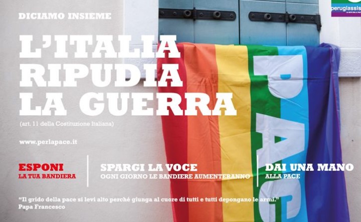L’arcobaleno deve sventolare prima della tempesta, ha affermato Flavio Lotti. Facciamo nostro l’appello di Papa Francesco perché ‘il grido della pace si levi alto’ e invitiamo tutti i cittadini e le istituzioni ad appendere la bandiera della pace alla finestra della propria casa, del proprio ufficio, della propria scuola. ‘L’umanità ha bisogno di vedere gesti di pace’ ha detto Papa Francesco. E se tutti gli italiani decideranno di esporre la bandiera della pace, ad accorgersene sarà il mondo intero. La pace è in serio pericolo e mai come in queste ore è necessario ribadire che la pace è responsabilità di tutti e tutti, senza distinzioni, devono sentirsi coinvolti.