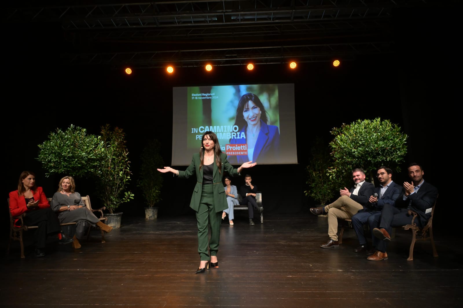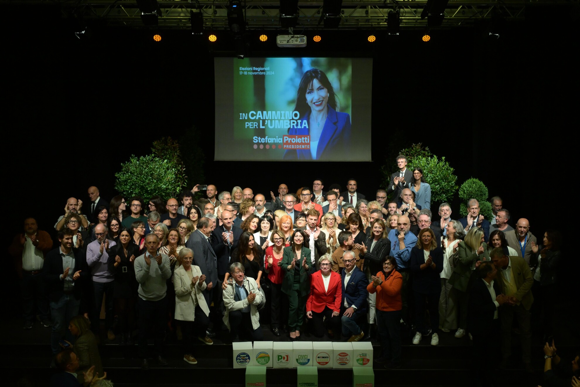 Al Teatro Sergio Secci di Terni sono state ufficialmente presentate le sette liste che sosterranno la candidatura di Stefania Proietti alle prossime elezioni regionali. La coalizione “Umbria in Cammino” si articola attraverso sette forze politiche e civiche, che puntano a governare la Regione con un programma basato su sanità, sviluppo economico, infrastrutture e sostenibilità. Ogni lista è stata rappresentata da un presentatore, con un evento moderato dal giovane attivista Diego Diomedi.