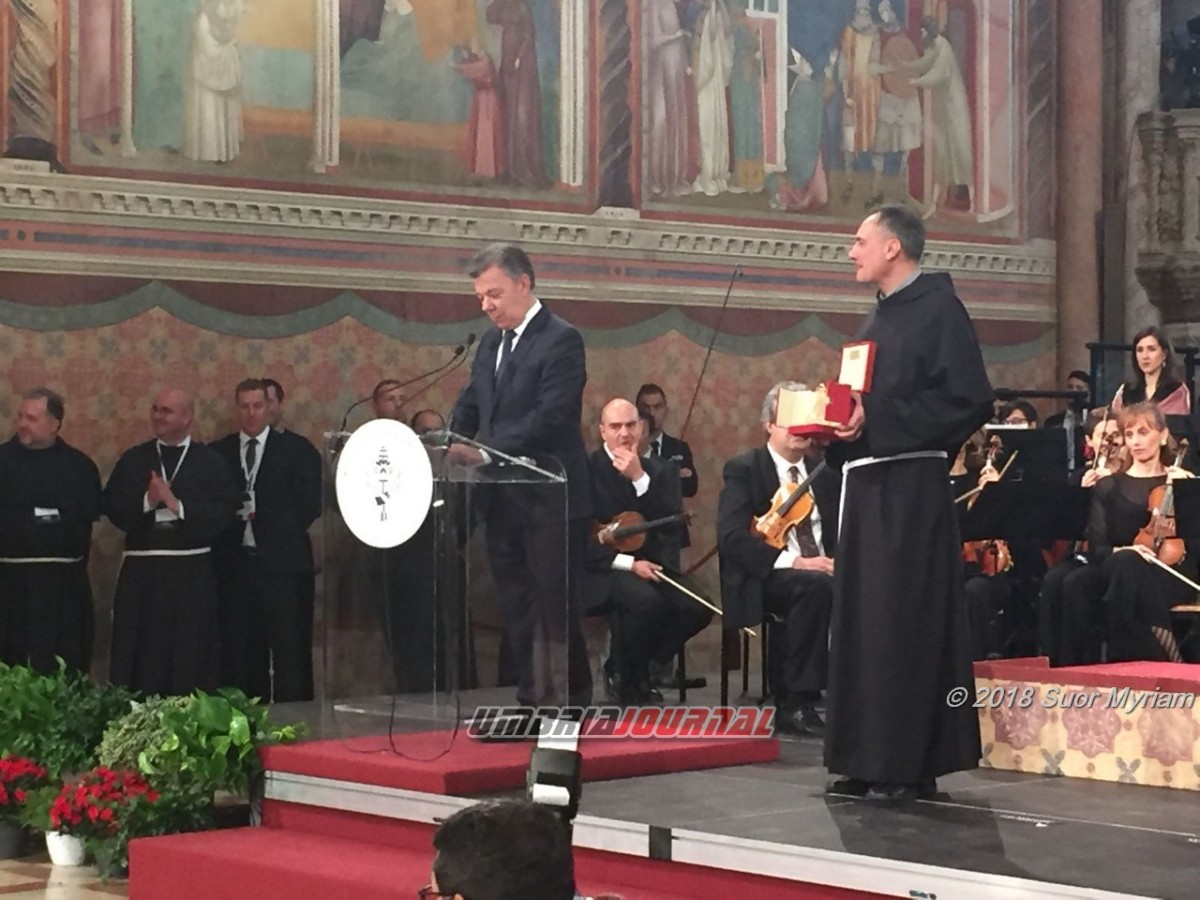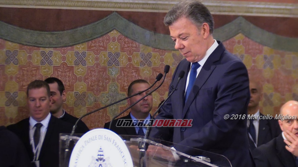 “Non sempre le cause più giuste, più umane, sono le più popolari, ma sono le uniche per le quali vale la pena lottare. Lo dico anche perché io l’ho vissuto sulla mia pelle”. Lo ha detto il presidente colombiano, Manuel Santos, nel suo saluto ai giovani riuniti nel Salone papale del Sacro convento di Assisi, presente la cancelliera tedesca Angela Merkel. Santos – che nel 2016 ricevette la Lampada della Pace di San Francesco e il Nobel per la Pace per la sua opera tesa alla riconciliazione e alla pacificazione in Colombia lacerata dalla guerriglia con le Farc – ha ricordato la sua esperienza: “in Colombia abbiamo superato, dopo un grande sforzo di dialogo, un conflitto armato che è durato più di mezzo secolo e ci è costato centinaia di migliaia di morti e milioni di vittime. Eppure, non mancano quelli che hanno nostalgia della guerra o che privilegiano la vendetta alla riconciliazione”. Il presidente colombiano  ha poi definito Angela Merkel “una cittadina tedesca che lavora con la coscienza di una cittadina del mondo”, ricordando “l’esempio e gli insegnamenti di suo padre, il pastore Horst Kasner”, e “la fede in Dio”. Santos ha sottolineato “le decisioni giuste e non sempre popolari, come quelle che la Merkel ha preso per rispondere alla crisi umanitaria di migliaia di migranti fuggiti dai propri paesi a causa dalla violenza, del fanatismo e della povertà”. La Cancelliera – ha sottolineato il presidente colombiano – è stata “un baluardo della difesa della eredità della convivenza e della pace dell’Unione europea” e rappresenta ” quei principi che devono servire da antidoto in un mondo, dove sorgono, con pericoloso vigore, i fantasmi del nazionalismo, del fondamentalismo, del razzismo, del populismo e della intolleranza”.