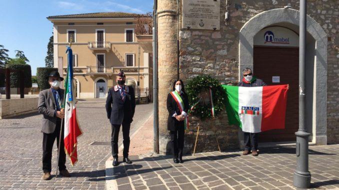 E’ stato un 25 aprile inconsueto a causa dell’emergenza sanitaria da Covid-19 ma le autorità comunali e i rappresentanti delle associazioni anche se per pochi minuti hanno voluto deporre una corona di alloro davanti a due monumenti simbolo della Città. Così alle 11 il sindaco Stefania Proietti, accompagnato dagli esponenti delle associazioni dei carabinieri, dei bersaglieri, degli alpini, degli invalidi e reduci di guerra e dei partigiani, ha omaggiato la targa dedicata a Giovanni Becchetti, il giovane antifascista ucciso nel 1921, e poi tutti insieme si sono diretti al monumento ai caduti in piazza Martin Luther King per un minuto di raccoglimento nel segno dei valori fondanti della nostra Costituzione e della nostra Repubblica.