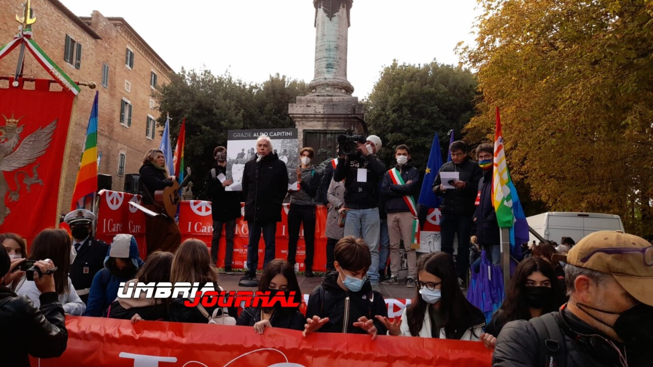 A Perugia ha parlato anche il cardinal Gualtiero Bassetti e c’era anche anche Don Luigi Ciotti, presidente di Libera, che ha detto “no alla retorica della pace contro la guerra – ha dichiarato a Rai News 24 -, camminare insieme per costruire legalità e giustizia”. In riferimento ai tafferugli di ieri a Roma e all’attacco alla sede della capitolina Camera generale italiana del lavoro, ha detto che “il dissenso è il sale della democrazia, ma non è invece accettabile la violenza. Fuori i fascisti e similari dalla politica – ha detto – e la politica si deve assumere responsabilità. Si applichino la legge Mancino e legge Scelba perché queste forme di violenza non possono calpestare la diaghita di un Paese”.