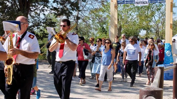 Anelli di marcia infilati con il sorriso e la gioia di una partecipazione emotiva sostenuta da parte dei rappresentanti delle istituzioni comunali. Dalla presidente municipale Donatella Casciarrialle autorità di altri comuni, da personaggi del mondo della cultura, economia, finanza e tempo libero a semplici cittadini per questa che rimarrà una iniziativa da palmares del Centro Pace.