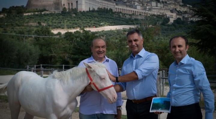 E poi c’è l’ultimo “segno divino”, l’evento speciale della nascita di “Via Lattea”, la cavallina albina, unica in Italia e in Europa, già una piccola star che si appresta a diventare una trottatrice come i suoi genitori entrambi conosciuti nell’ambiente degli ippodromi. Qualche giorno prima di Pasqua, esattamente il 4 aprile, ai piedi della Basilica di San Francesco, venne alla luce questa cavallina totalmente bianca, nata da “mamma” Melodiass, fattrice con ottimi trascorsi sulle piste di trotto (il papà e’ Gruccione Jet, altro assiduo frequentatore degli ippodromi).