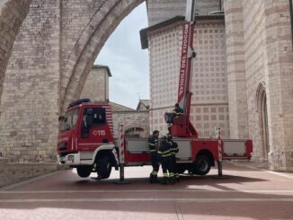 Vigili del fuoco puliscono gli arconi della Basilica di Santa Chiara ad Assisi ASSISI – I vigili del Fuoco di Assisi con un’autogrù hanno eliminato [Leggi]