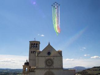 Le Frecce Tricolori toccano anche il cielo di Assisi, la città del patrono d’Italia