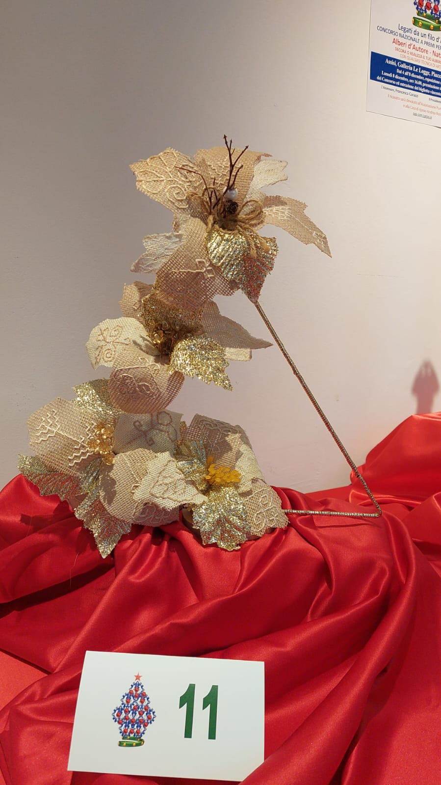 Al secondo posto la commissione ha collocato l’albero numero 16, elaborato che si è distinto per la precisione nella lavorazione e la scelta dei materiali impiegati. Albero ideato dalle allieve del corso di ricamo su tulle coordinato da Sara Ticci, lavoro che ha saputo esprimere un risultato collettivo armonico e tecnicamente accurato.