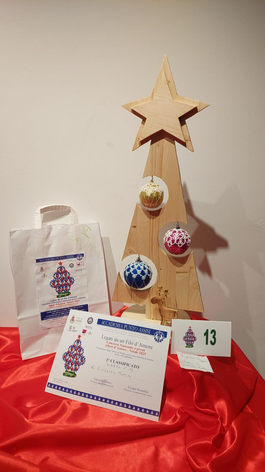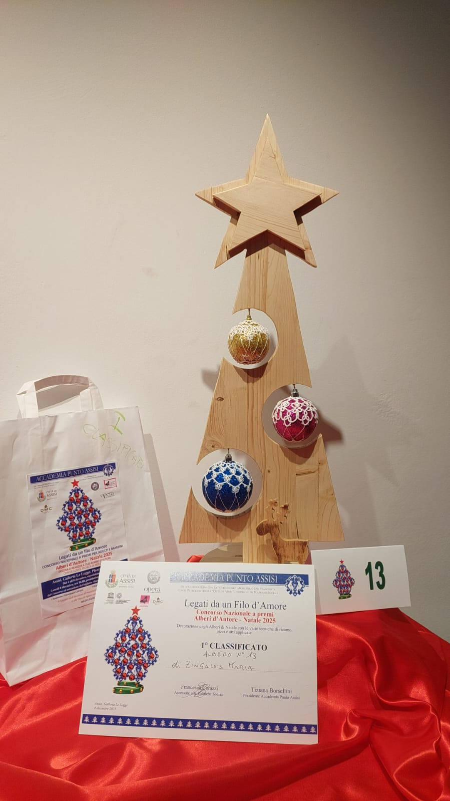 Il primo posto assegnato dalla giuria tecnica è stato attribuito all’albero numero 13, riconosciuto dalla giuria tecnica come la proposta più completa e armonica nella realizzazione. L’albero è stato realizzato dall’artista Roberto Migneco e le palline natalizie, con inserti in chiacchierino, sono state realizzate da Maria Zingales, arrivate direttamente da Cassibile, in provincia di Siracusa. L’albero in legno ha riscosso particolare apprezzamento per la sua impostazione creativa, diventando uno dei protagonisti premiati della manifestazione.