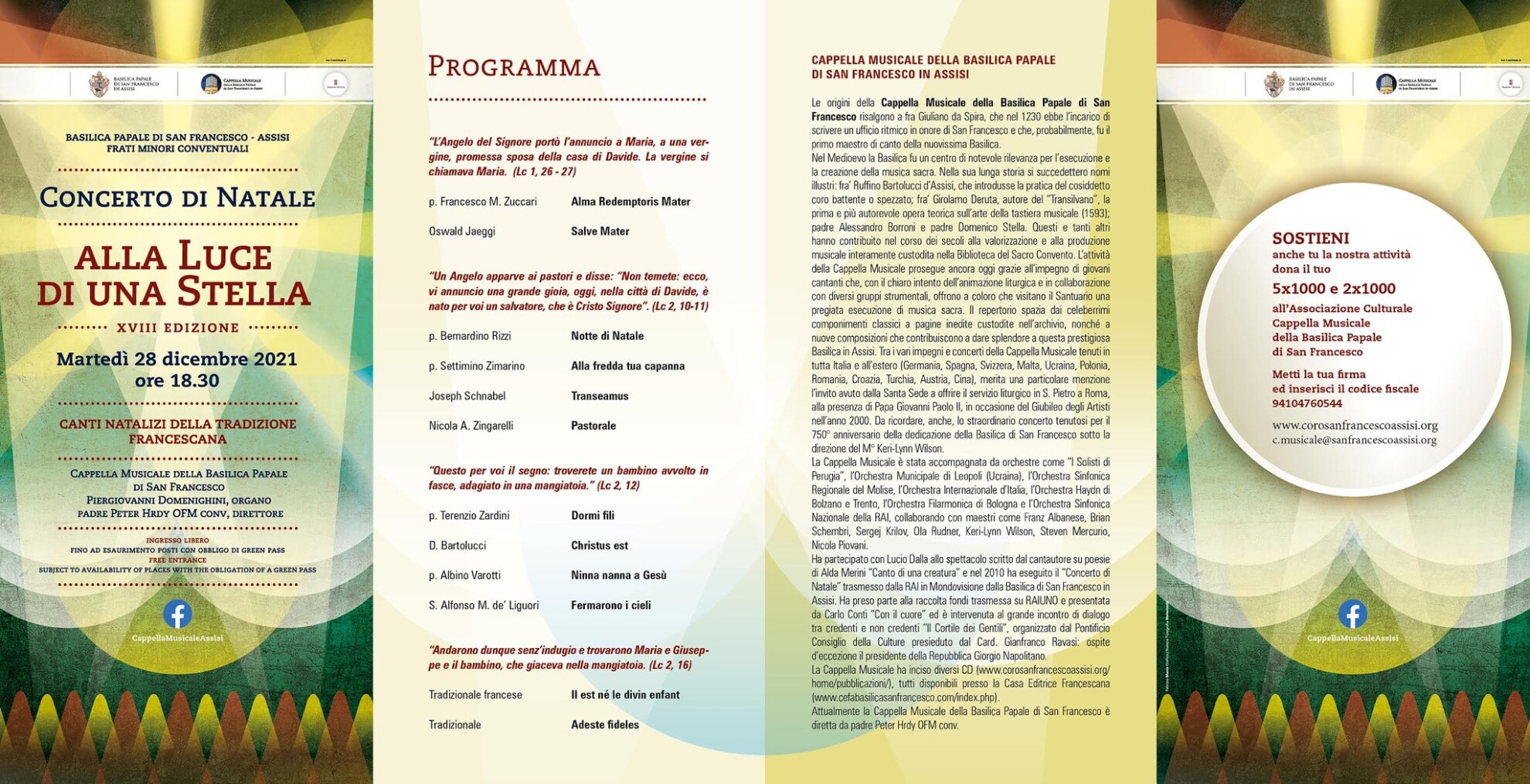 Visto il protrarsi della situazione di emergenza il concerto sarà trasmesso anche in diretta Fb sulla pagina della Cappella Musicale della Basilica Papale di San Francesco in Assisi (https://www.facebook.com/cappellaMusicaleAssisi) in modo che tutti possano partecipare anche dalle proprie case, senza correre alcun rischio.