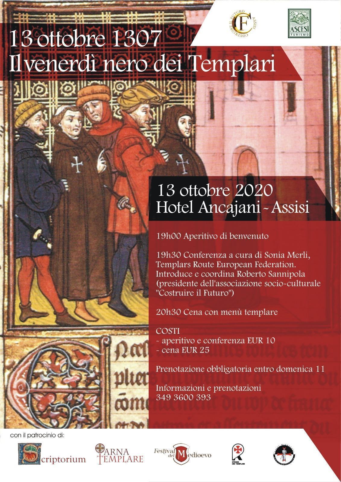 Il 13 ottobre 2020, in occasione della ricorrenza del “venerdì nero” dell’arresto dei templari (13 ottobre 1307) l’associazione socio-culturale “Costruire il Futuro” e l’agenzia di viaggi “Ascesi Tour” organizzano una conferenza introdotta dal presidente dell’associazione dottor Roberto Sannipola e della storica medievale dottoressa Sonia Merli.