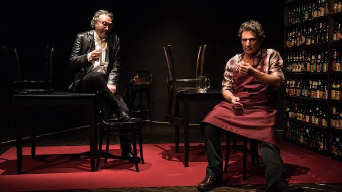 Questo lavoro, fresco di debutto al Piccolo Teatro di Milano, vede in scena Marco, proprietario di una birreria e Sergio, avventore (apparentemente) qualsiasi, che di mestiere fa il professore in un Liceo. Al bancone del bar, con la complicità dell’alcool che favorisce l’intimità, i due parlano di tutto: di vita, di idee e di Francesco, il figlio di Marco nonché alunno di Sergio, che, pur non apparendo mai, piano piano diventa un terzo protagonista, la cui assenza sulla scena, come sottolinea l’autore, «illumina tutto il testo».