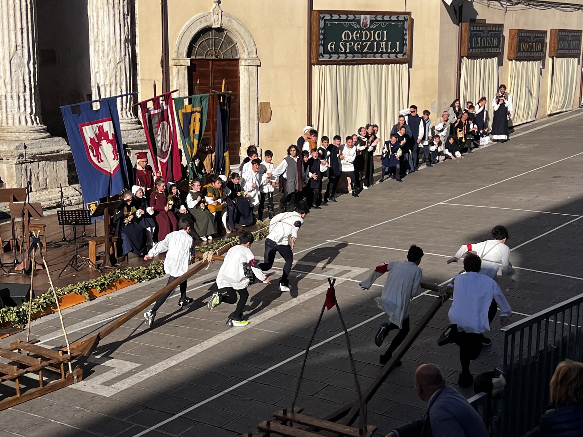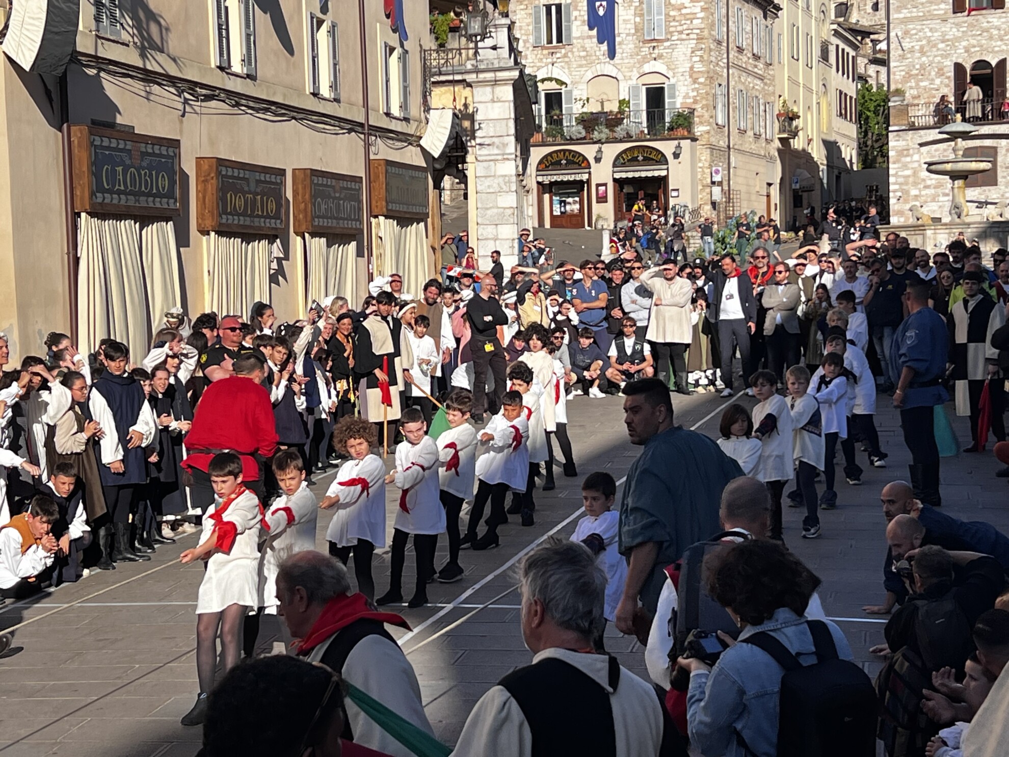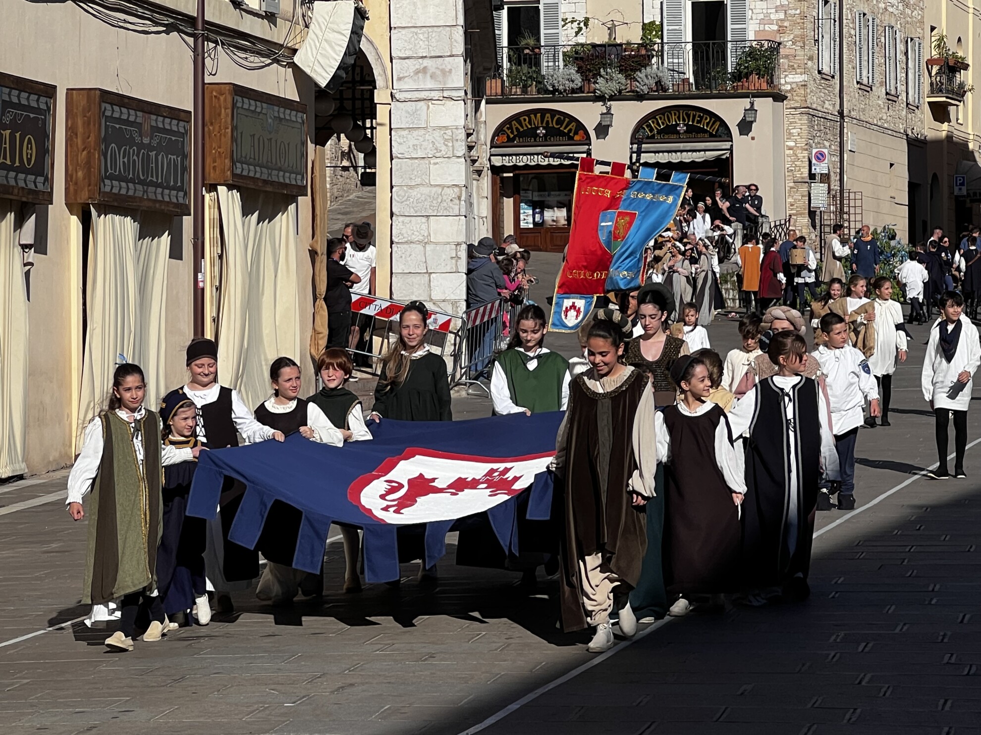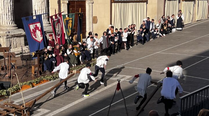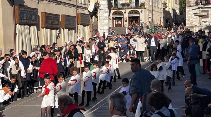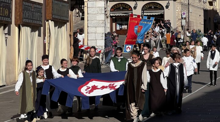 Le celebrazioni sono state impreziosite dall’esibizione del Gruppo Sbandieratori di Assisi e dai tamburini vestiti di rosso e blu, che hanno aggiunto colore e vivacità all’evento. I cortei storici dei bambini delle due contrade hanno attraversato le vie della città, in un pomeriggio di festa e tradizione che ha coinvolto tutta la comunità.