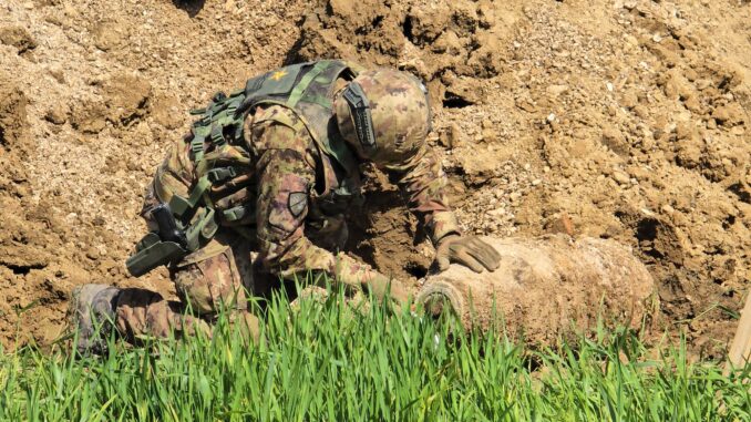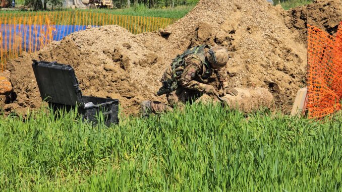 L’ordigno bellico risalente alla Seconda Guerra Mondiale trovato ieri pomeriggio nella zona industriale di Petrignano, tra la Colussi e la Verniciatura Eugeni, è stato messo in sicurezza dal un nucleo CMD (Conventional Munition Disposal – Bonifica di munizionamento Convenzionale) del Reggimento Genio Ferrovieri di Castel Maggiore di Bologna dell’Esercito Italiano, al seguito del colonnello Marco Silenzi, in concorso alla prefettura di Perugia, disposto dal Comando Forze Operative Nord di Padova deputato alla gestione dei concorsi militari in tempo di pace nell’area centro-settentrionale della penisola.
