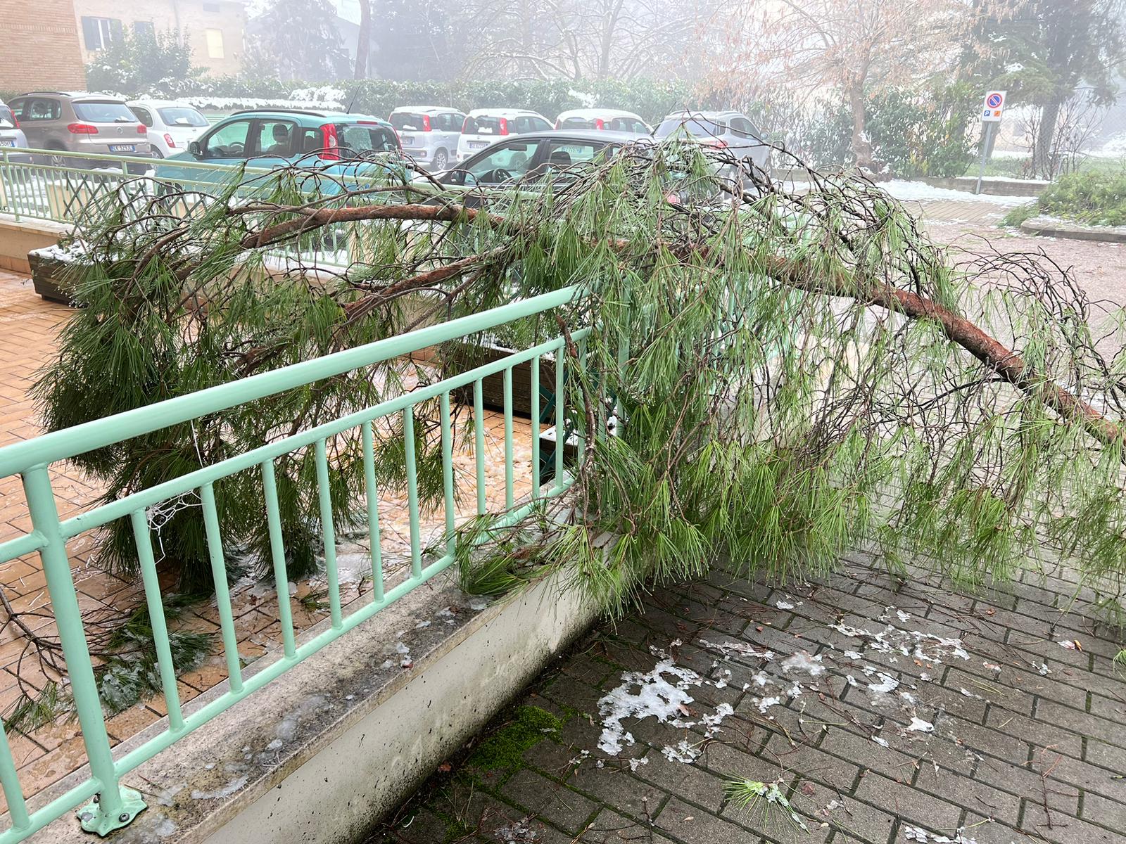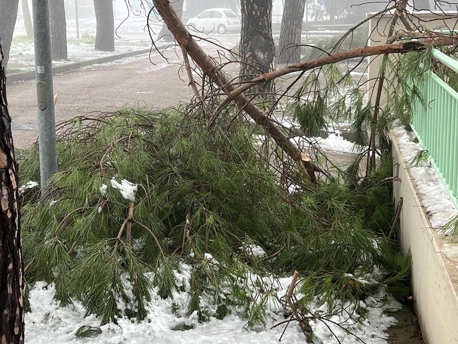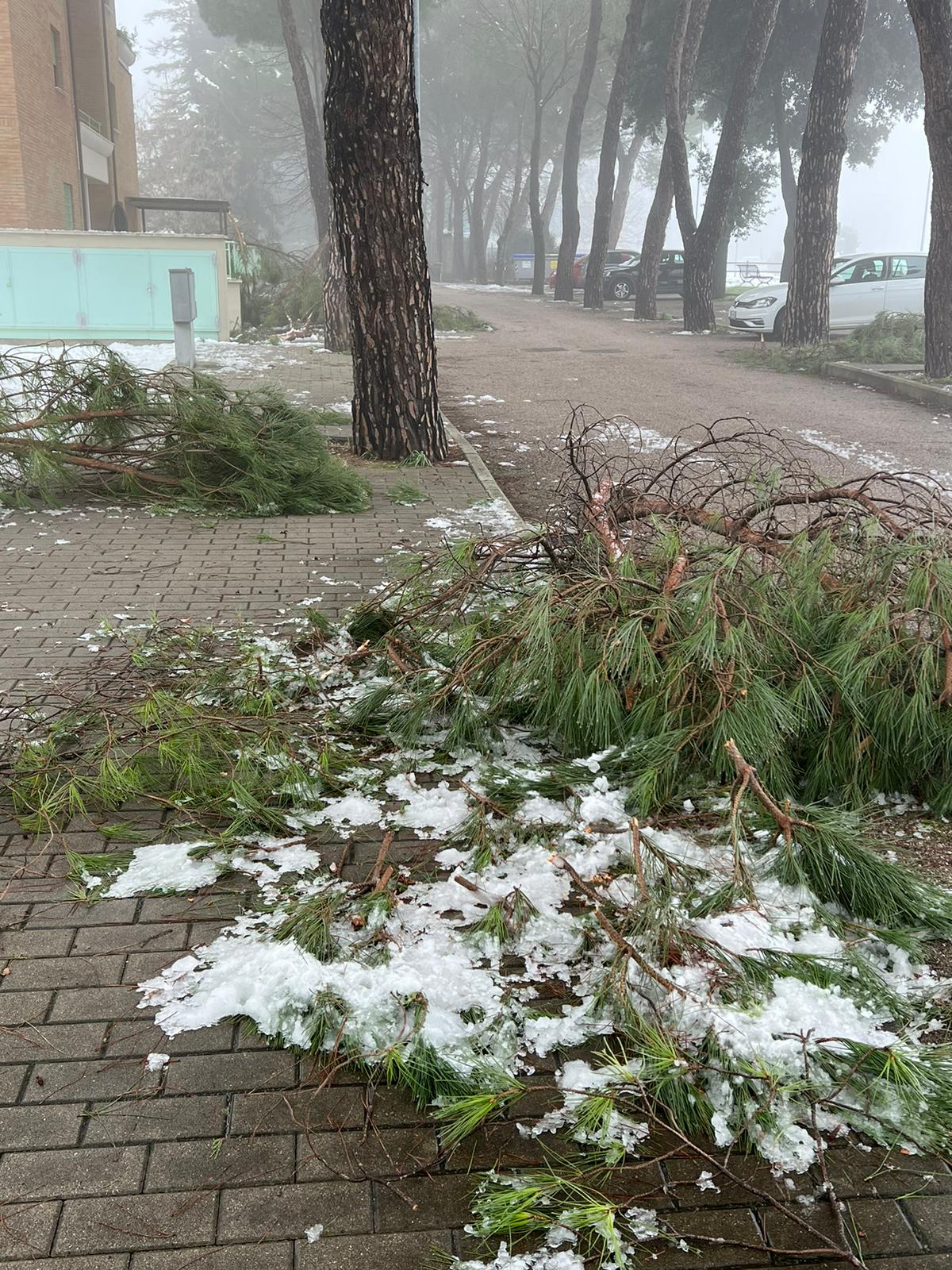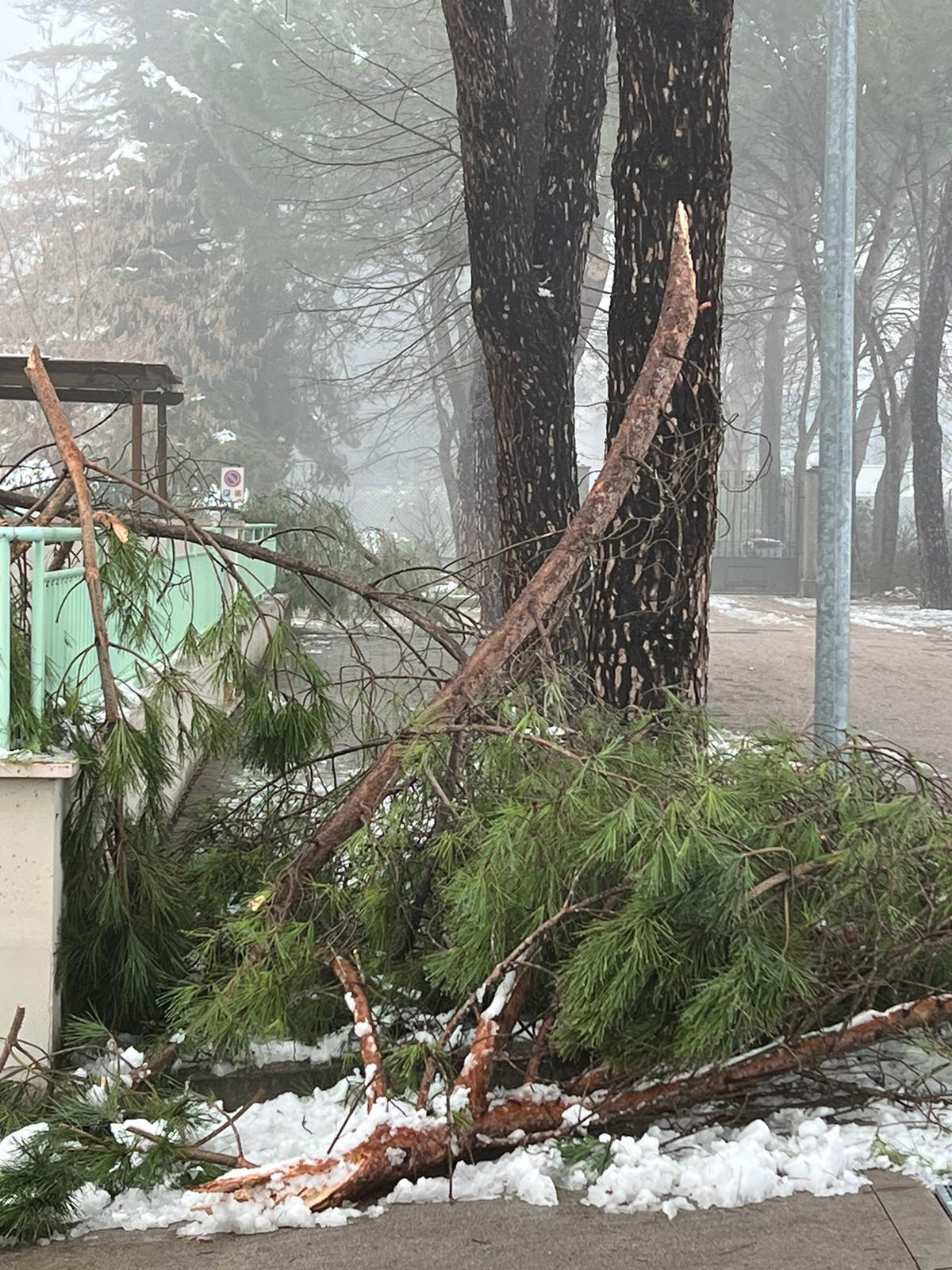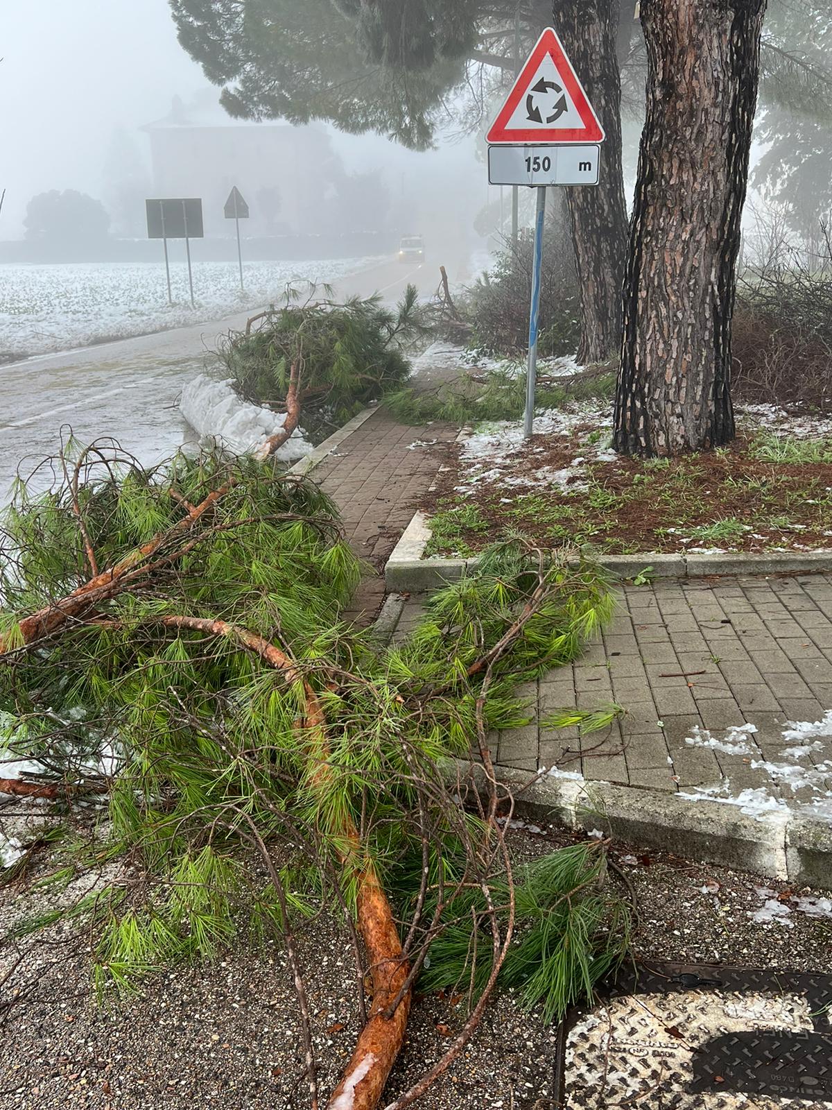 Rami di pini marittimi enormi sono caduti a Santa Maria degli Angeli, creando disagi ai residenti di un condominio. La neve ha appesantito i rami degli alberi che si sono spezzati cadendo a terra. “E’ successo di tutto e di più, l’amministrazione di Assisi non interviene per una potatura seria – dicono alcuni residenti della zona – i rami dopo 24 ore sono ancora lì e nessuno li ha rimossi”.