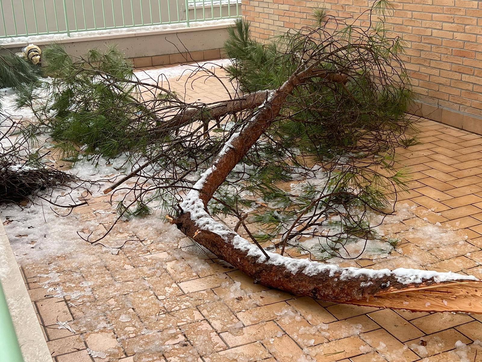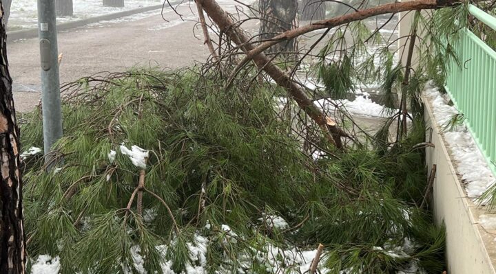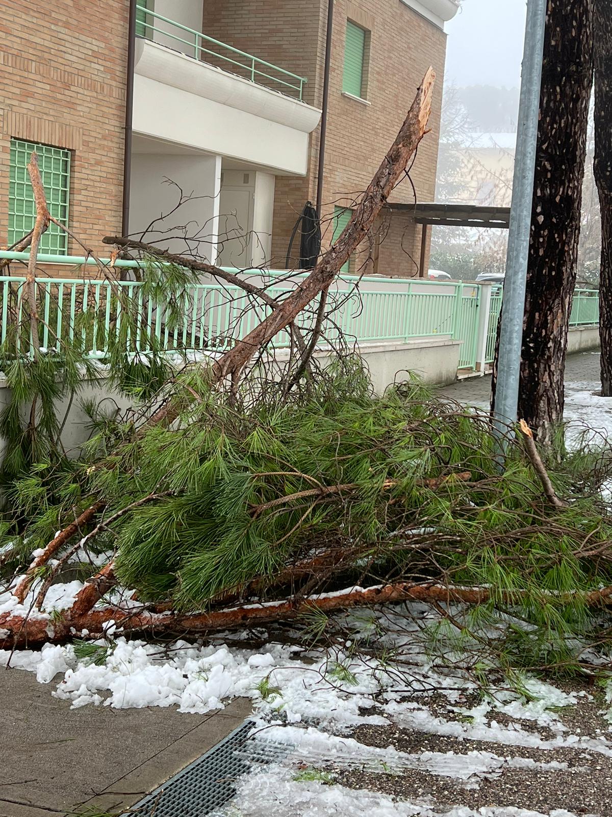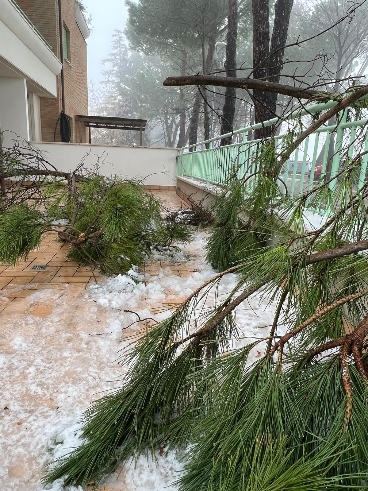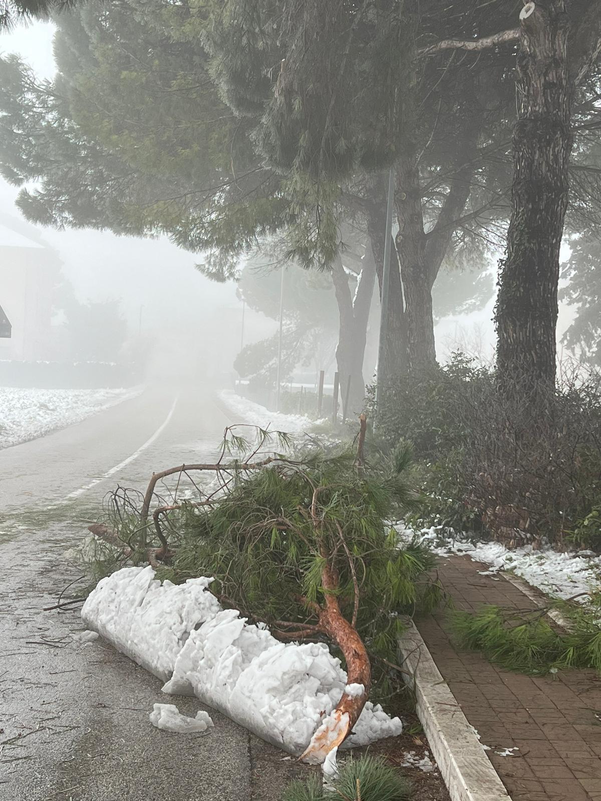 Rami di pini marittimi enormi sono caduti a Santa Maria degli Angeli, creando disagi ai residenti di un condominio. La neve ha appesantito i rami degli alberi che si sono spezzati cadendo a terra. “E’ successo di tutto e di più, l’amministrazione di Assisi non interviene per una potatura seria – dicono alcuni residenti della zona – i rami dopo 24 ore sono ancora lì e nessuno li ha rimossi”.
