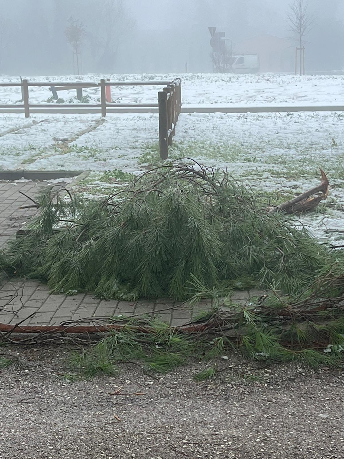 Tragedia sfiorata a Santa Maria degli Angeli, cadono rami di pini carichi di neve