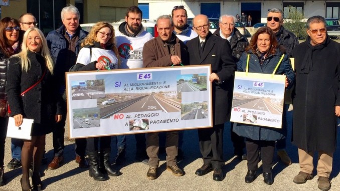 Oggi, con il minibus Ricci Presidente dell’Umbria, abbiamo percorso il quadro stradale della E45 nel tratto Orte-Terni-Perugia-Città di Castello, per sottolineare esattamente la nostra posizione e cioè che siamo contrari ad ogni forma di pedaggio oltre che per i residenti, per il mondo dell’economia, degli autotrasportatori e per i turisti! Noi vogliamo nessun pedaggio per tutti!